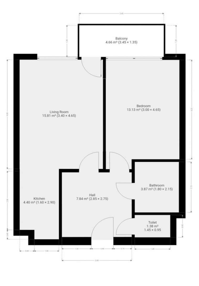 V bytě byla vybudována dělící příčka mezi ložnicí a obývacím pokojem - prodloužena proti té na fotkách.