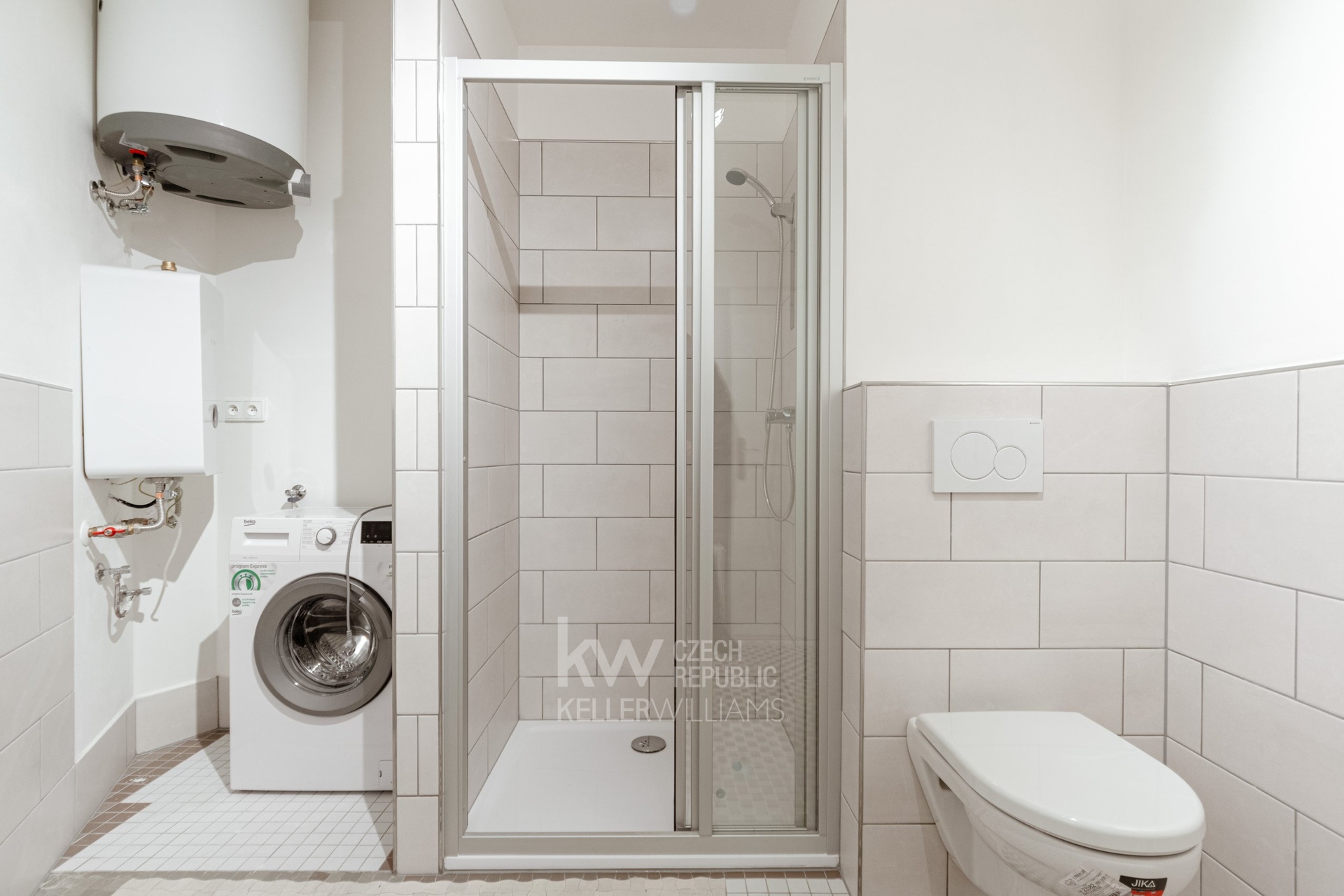Kuchyně je vybavena kuchyňskou linkou a spotřebiči včetně lednice, myčky, trouby a varné desky. V koupelně je sprchový kout a k dispozici je pračka se sušičkou. Byt také disponuje dvěma toaletami. K bytu náleží sklep.