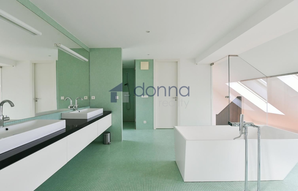 Nabízíme k pronájmu zrekonstruovaný, mezonetový byt 3+1, 130 m2 s terasou o velikosti 10 m2 směřující do klidného vnitrobloku ve 4. a 5. patře kompletně zrekonstruovaného bytového domu s výtahem, v lukrativní pražské čtvrti Praha 7 - Bubeneč. Dispozice bytu: vstupní hala se šatnou, obývací pokoj, plně vybavená kuchyň se spotřebiči (sklokeramická varná deska, elektrická trouba, myčka a lednice s mrazákem), ložnice s vestavěnou skříní, koupelna se sprchovým koutem a samostatné toaleta. Horní podlaží bytu: prosklená galerie s otevřenou koupelnou (vana, sprchový kout, toaleta a bidet) ložnice se vstupem na terasu, pracovna, šatna. Vysoké standardy zahrnují vysokou kvalitu materiálů a zpracování, dřevěné podlahy, dlažba. Byt je disponuje vestavěnými skříněmi, pračkou, zabudované stropní osvětlení, bezpečnostní dveře, klimatizace, videotelefon. Dům je situován v sousedství se rozlehlým parkem Stromovka a Letenských sadů. Výborná občanská vybavenost, v okolí se nachází nákupní centrum, obchody a množství restaurací i kaváren. V pěší dostupnosti se nachází tramvajová stanice Letenské náměstí. Volný k nastěhování 1. 5. 2026.