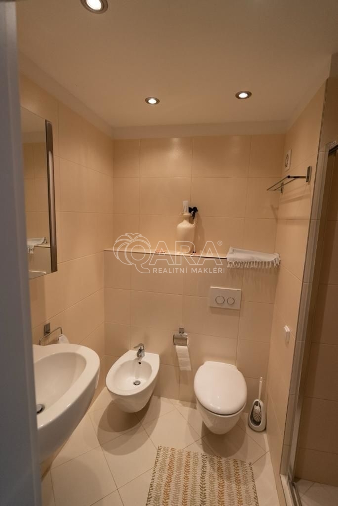 Byt prošel částečnou rekonstrukcí. V rámci rekonstrukce vznikly v bytě dvě samostatné nové koupelny s toaletou, vanou, sprchovým koutem a bidetem.
