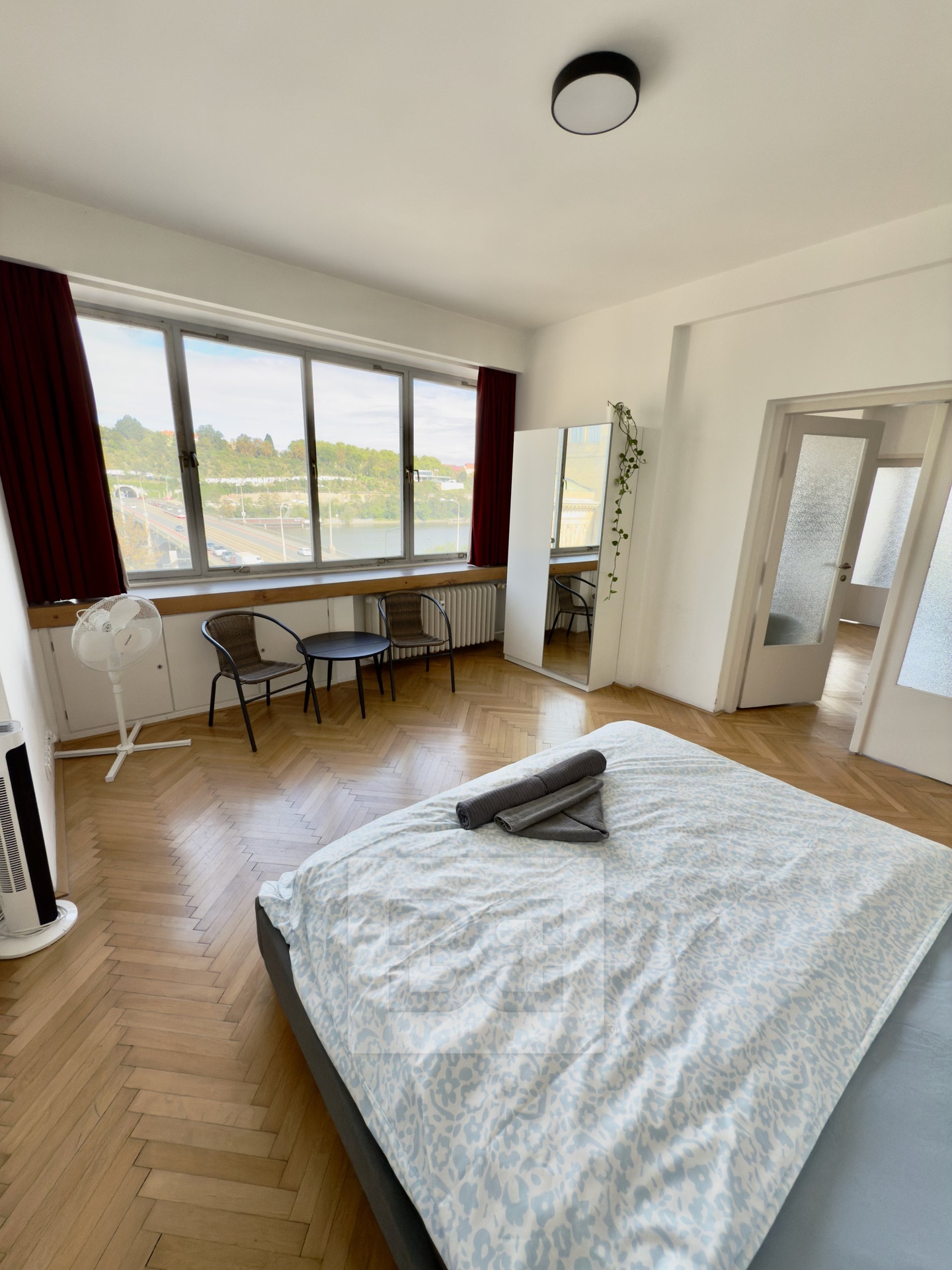 Nabízíme Vám k pronájmu byt 3+1 s obytnou plochou 82 m², situovaný v 5.NP domu s výtahem, v ulici Revoluční. Byt se sestává ze vstupní chodby, koupelny se sprchovým koutem a toaletou, kuchyně vybavené varnou deskou, mikrovlnou troubou, myčkou nádobí a lednicí s mrazákem, obývacího pokoje, ložnice, ke které přiléhá druhá koupelna se sprchovým koutem, toaletou a bidetem a druhého pokoje. Výhled z oken pokojů na řeku Vltavu.