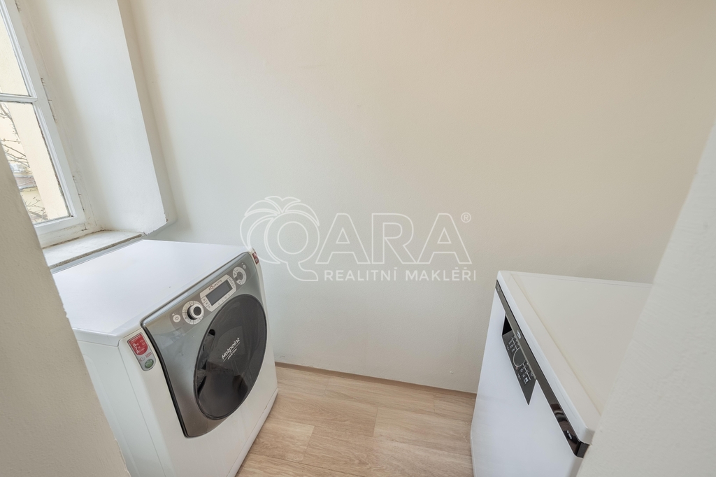 Součástí bytu je dále prostorná předsíň (12,7 m²), koupelna s vanou a umyvadlem, samostatné WC a komora, ve které je umístěna pračka a myčka na nádobí. V bytě jsou parkety, vinyl a dlažba.
