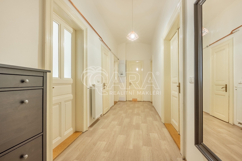 Nabízíme k pronájmu prostorný byt o dispozici 3+1 a celkové ploše 93 m², který se nachází v 1. patře činžovního domu s výtahem (výtah je v mezipatrech) v klidné ulici Lužická na Vinohradech.