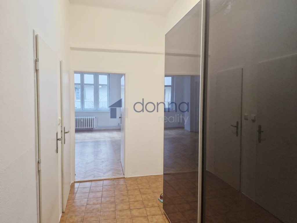 Pronájem prostorného bytu 3+1, o ploše 96m2, umístěný v přízemí cihlového domu, ulice Plzeňská, Praha 5 - Smíchov.