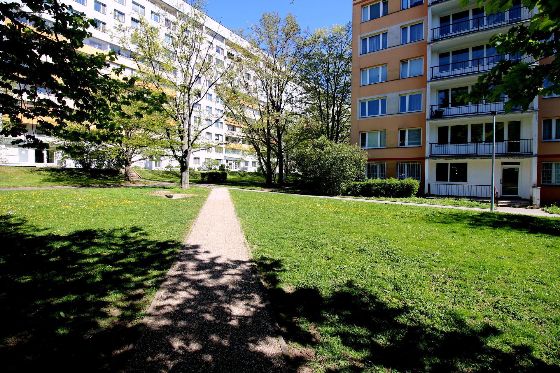 V okolí je bohatá zeleň, sportoviště a kompletní občanská vybavenost včetně lékaře.