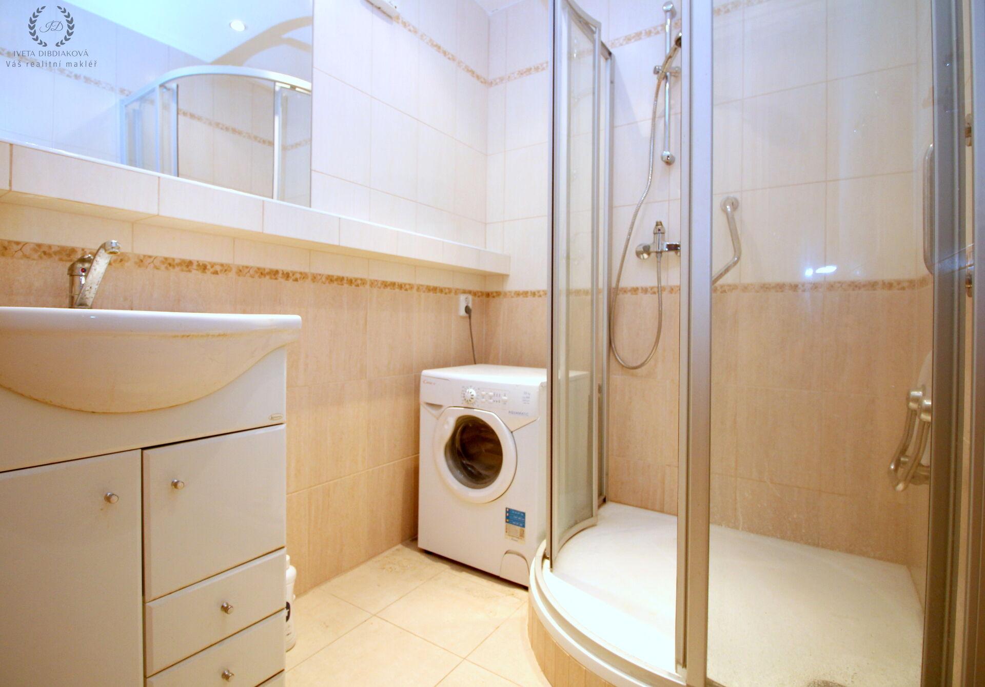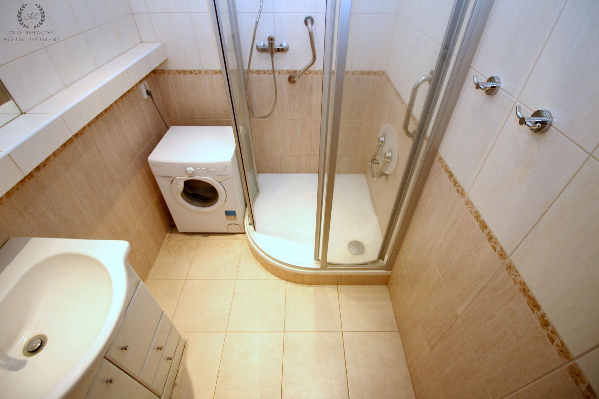 Koupelna je vybavena sprchovým koutem, pračkou a umyvadlem. Samostatná toaleta.