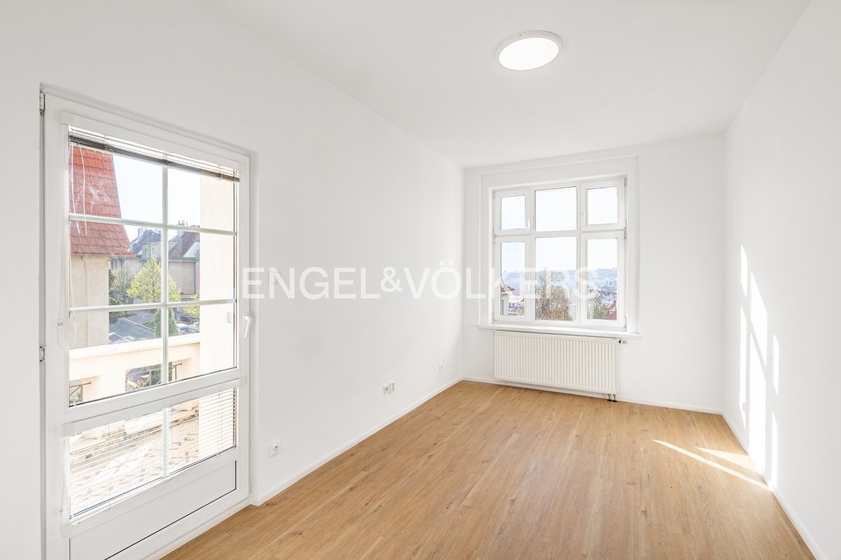 Dispozici bytu tvoří tři samostatné pokoje. Součástí je také menší místnost o velikosti 4 m², kterou lze využít jako pracovnu, šatnu nebo úložný prostor. K dispozici je samostatná kuchyně, která je plně vybavena všemi spotřebiči. Za kuchyní se nachází praktická technická místnost, dále je zde koupelna se sprchovým koutem a toaletou a samostatná toaleta. Pokoje jsou orientovány na jih, kuchyně na sever.