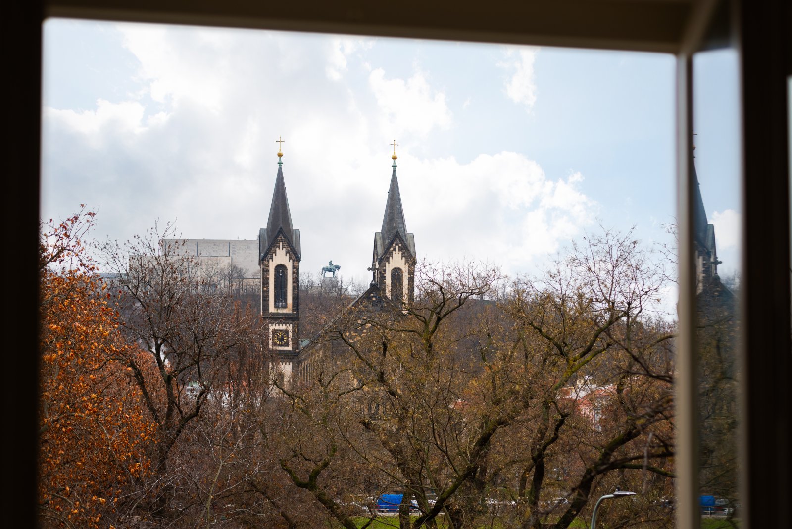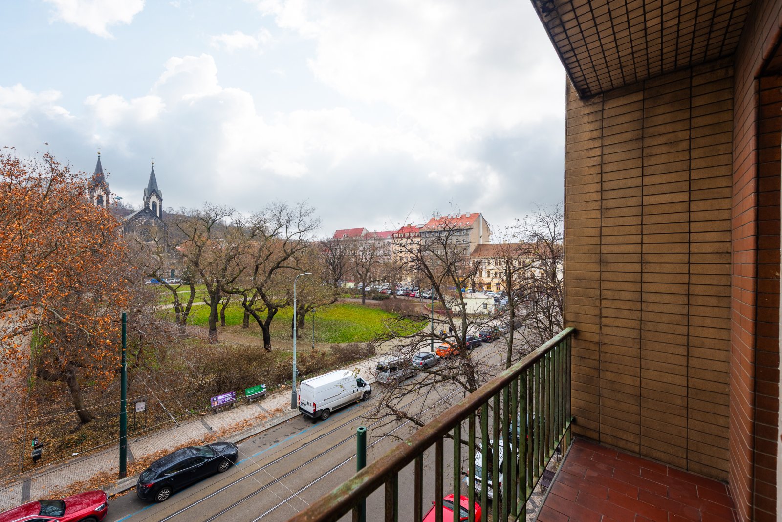 Byt disponuje dvěma balkony – jeden je přístupný z kuchyně a orientovaný do klidného vnitrobloku na severní stranu, druhý navazuje na jeden z hlavních pokojů orientovaných na jižní stranu. Odtud se otevírá krásný výhled na Karlínské náměstí, kostel sv. Cyrila a Metoděje a panorama Vítkova.