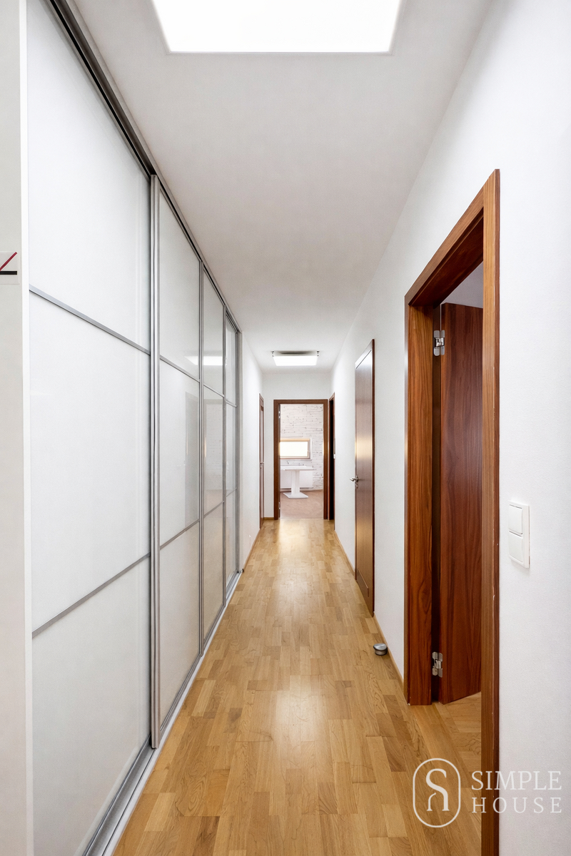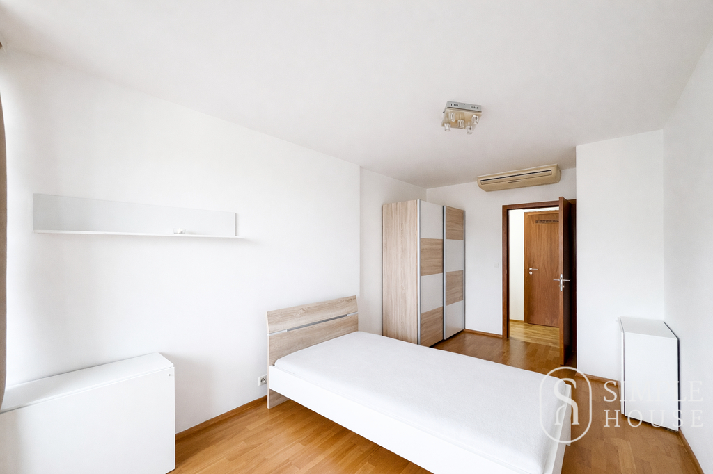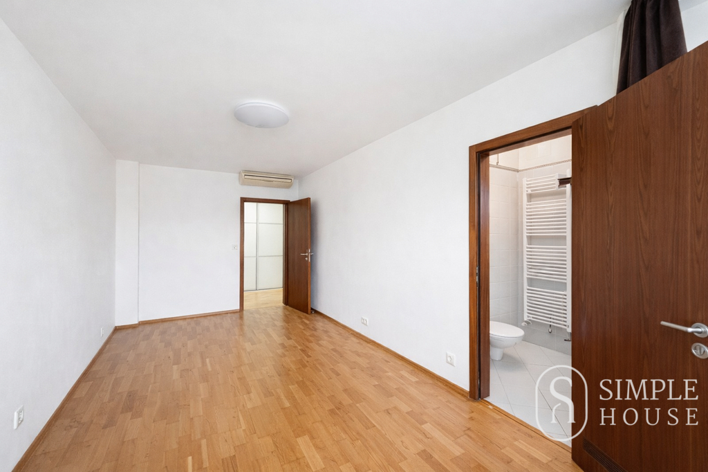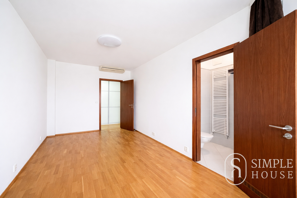 Jedna z ložnic je vybavena postelí, pracovním stolem a šatní skříní a nabízí dostatek prostoru pro pohodlné bydlení. Druhá ložnice je řešena jako master bedroom a disponuje vlastní koupelnou a samostatnou šatnou.