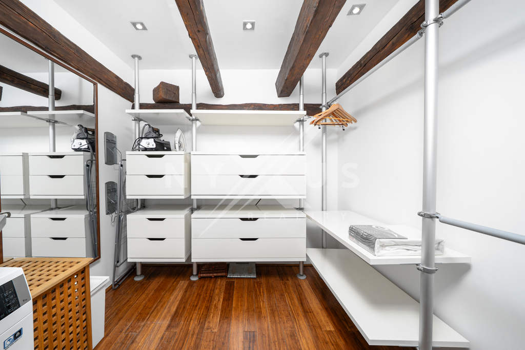 Celý prostor je otevřený, jednotlivá patra/pokoje neoddělují dveře, vzhledem k použití prémiových materiálů (především dřeva) v bytě nedoporučujeme domácí zvířata.