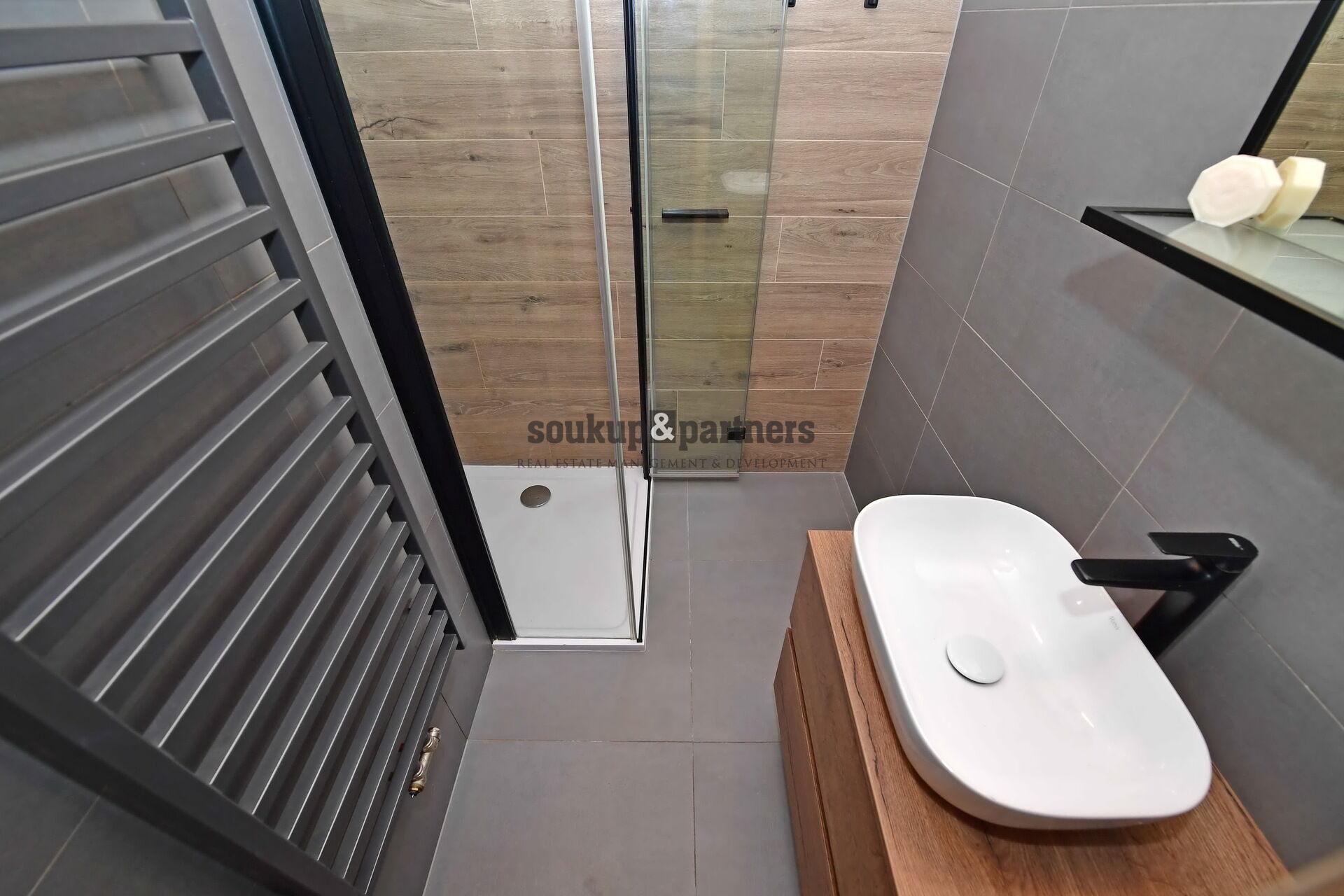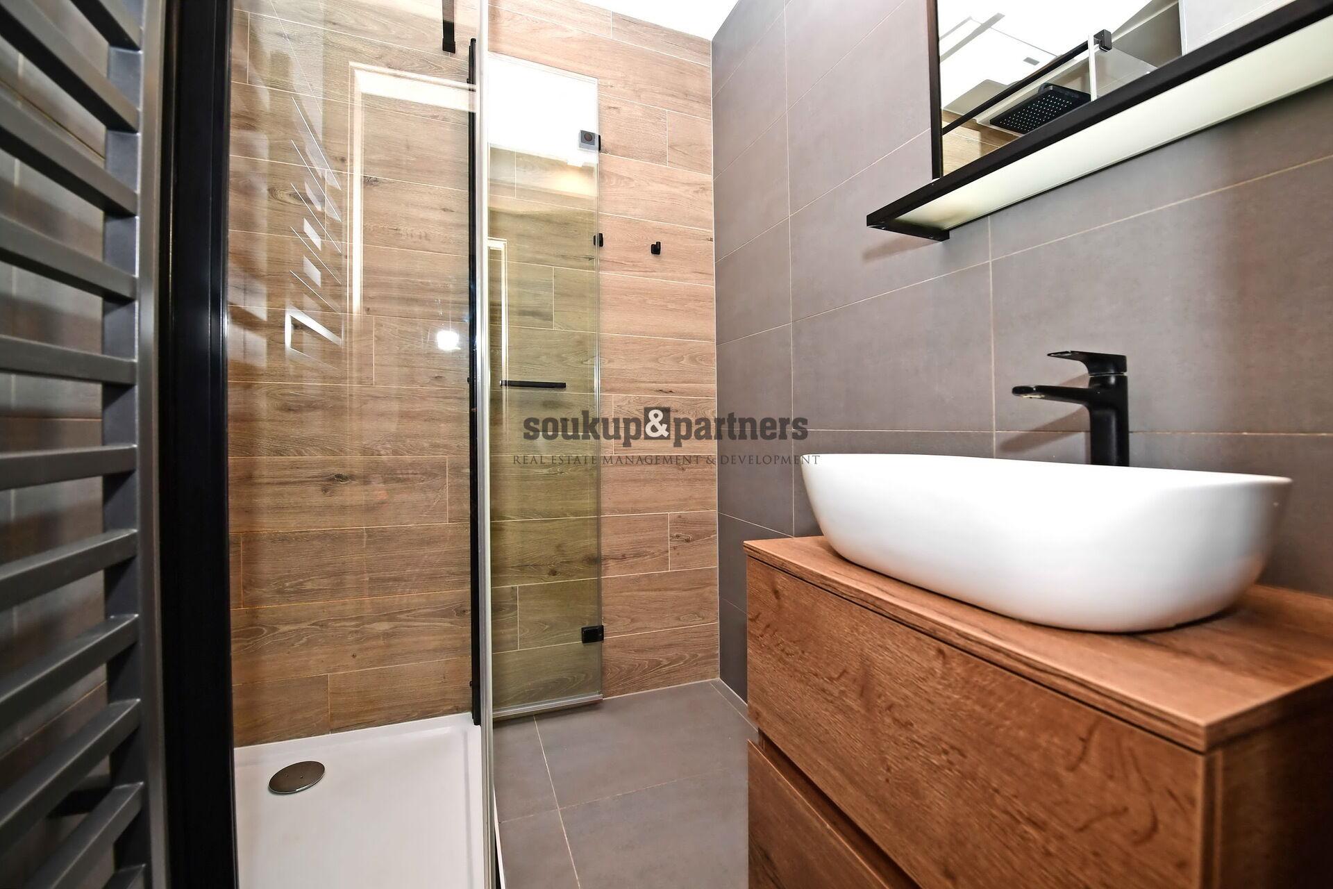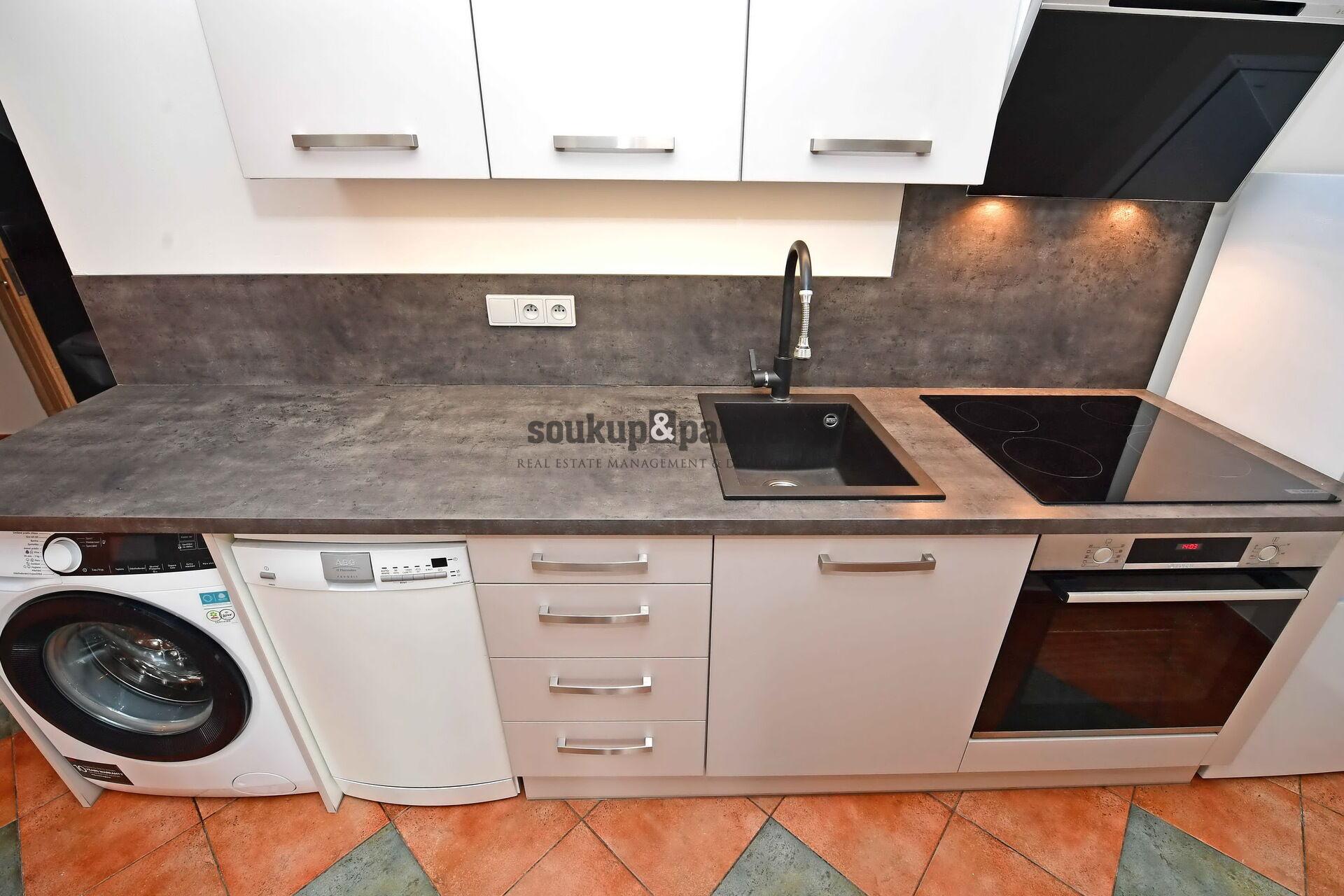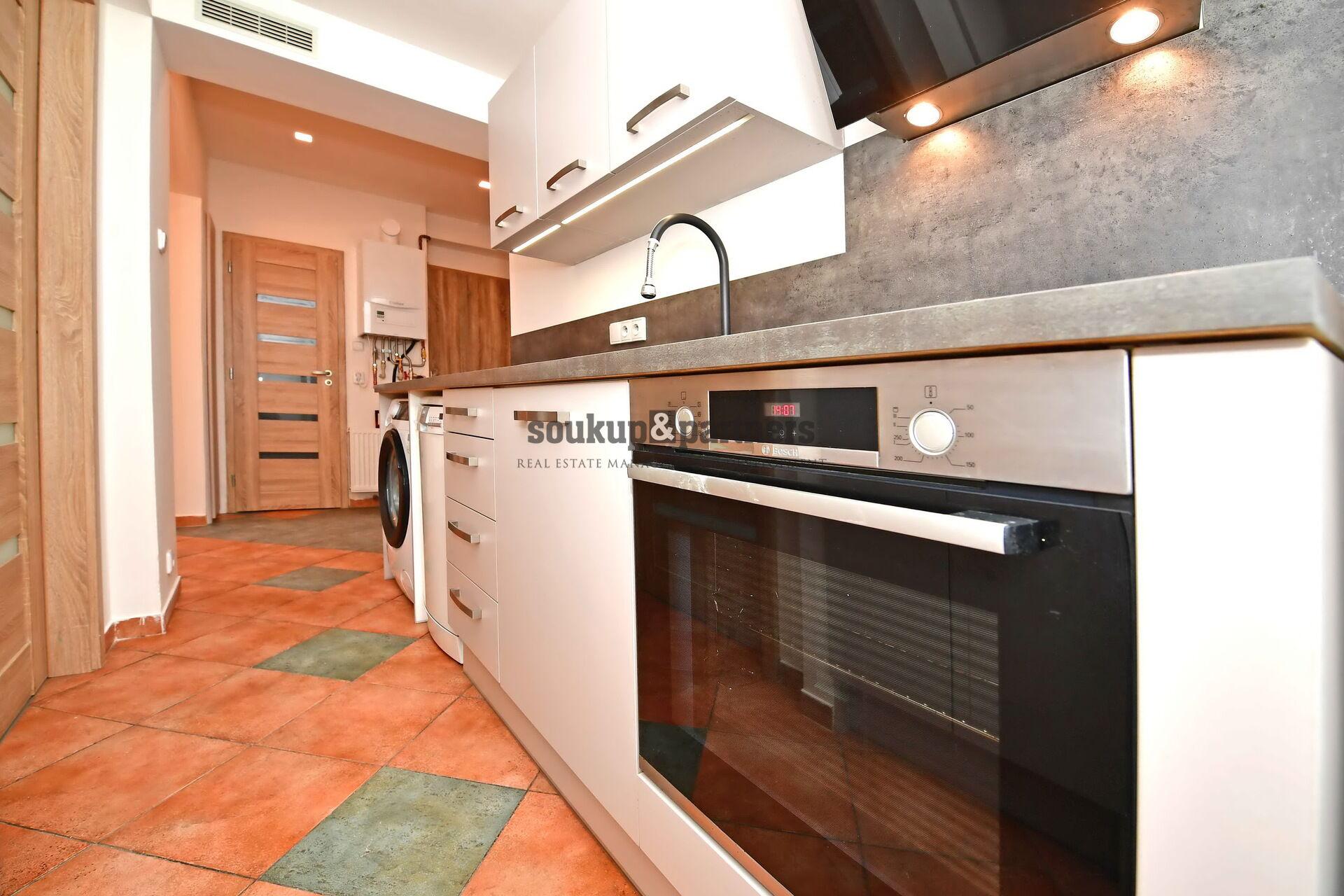 Vše v udržovaném stavu - kuchyňská linka vč. spotřebičů, sklokeramická deska, horkovzdušná trouba, myčka, pračka, digestoř, lednice s mrazákem,, koupelna se sprchovým koutem, šatní skříně.