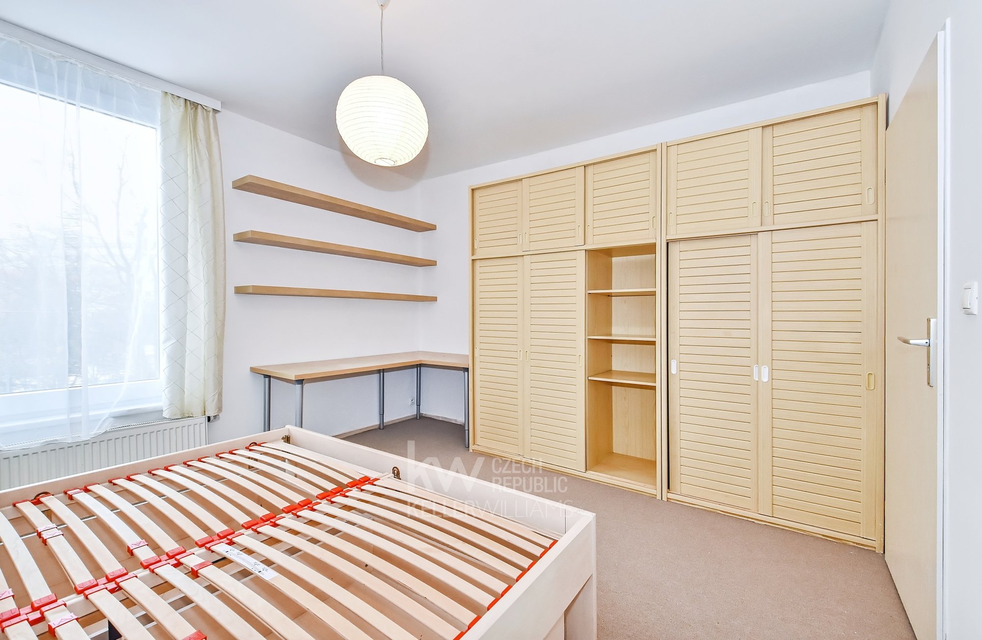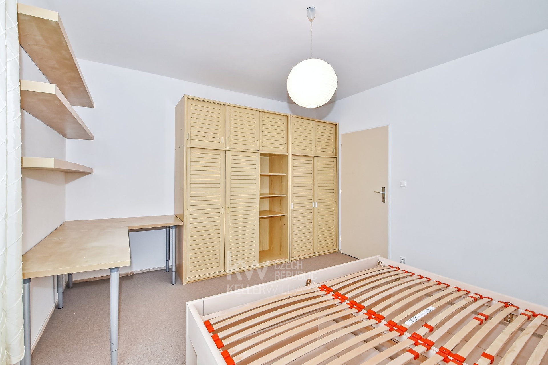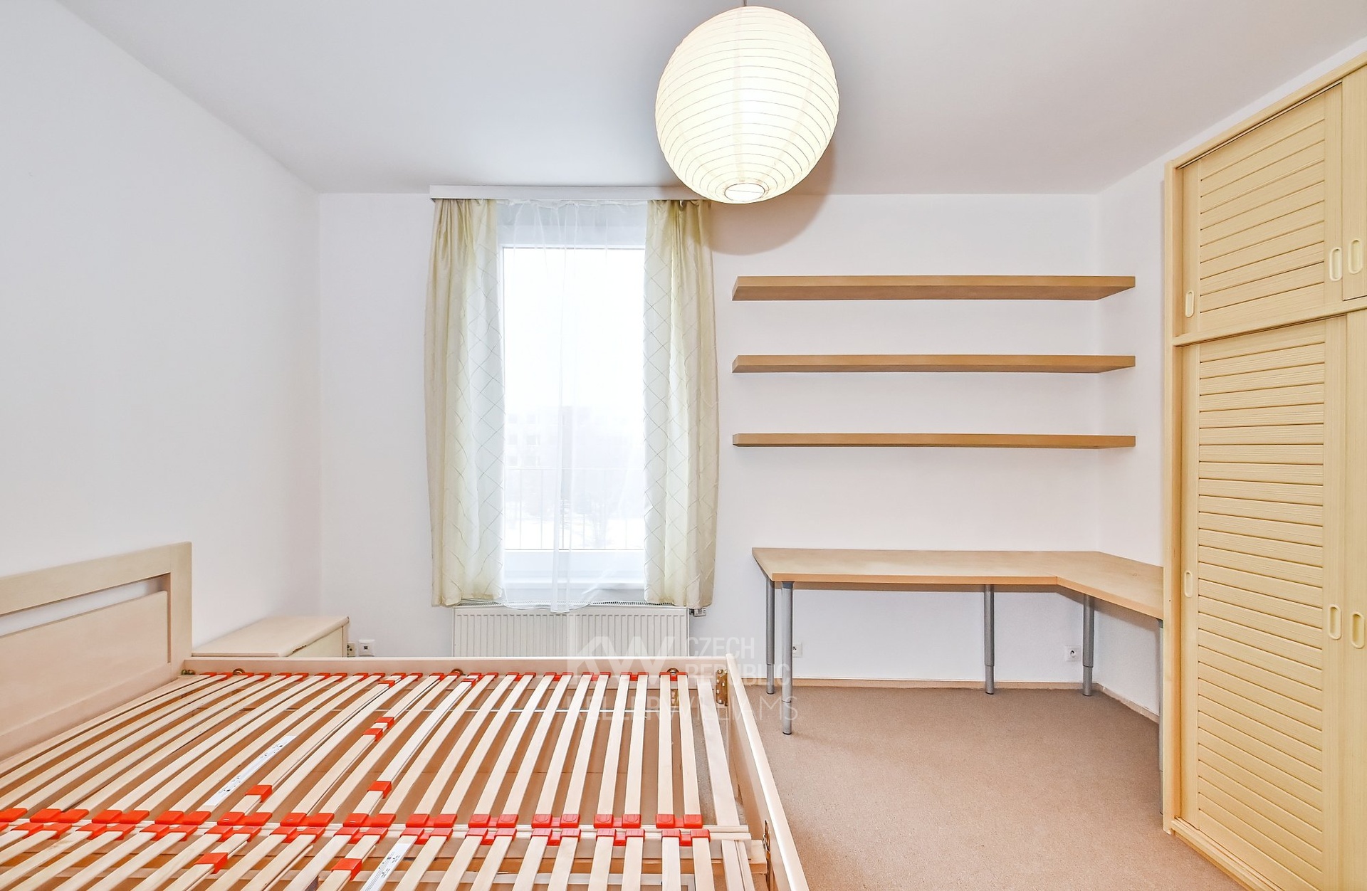 Byt je částečně vybaven – k dispozici je dvoulůžko v ložnici, šatní skříně, pracovní stůl a v chodbě vestavěné úložné skříně a botník - viz foto.