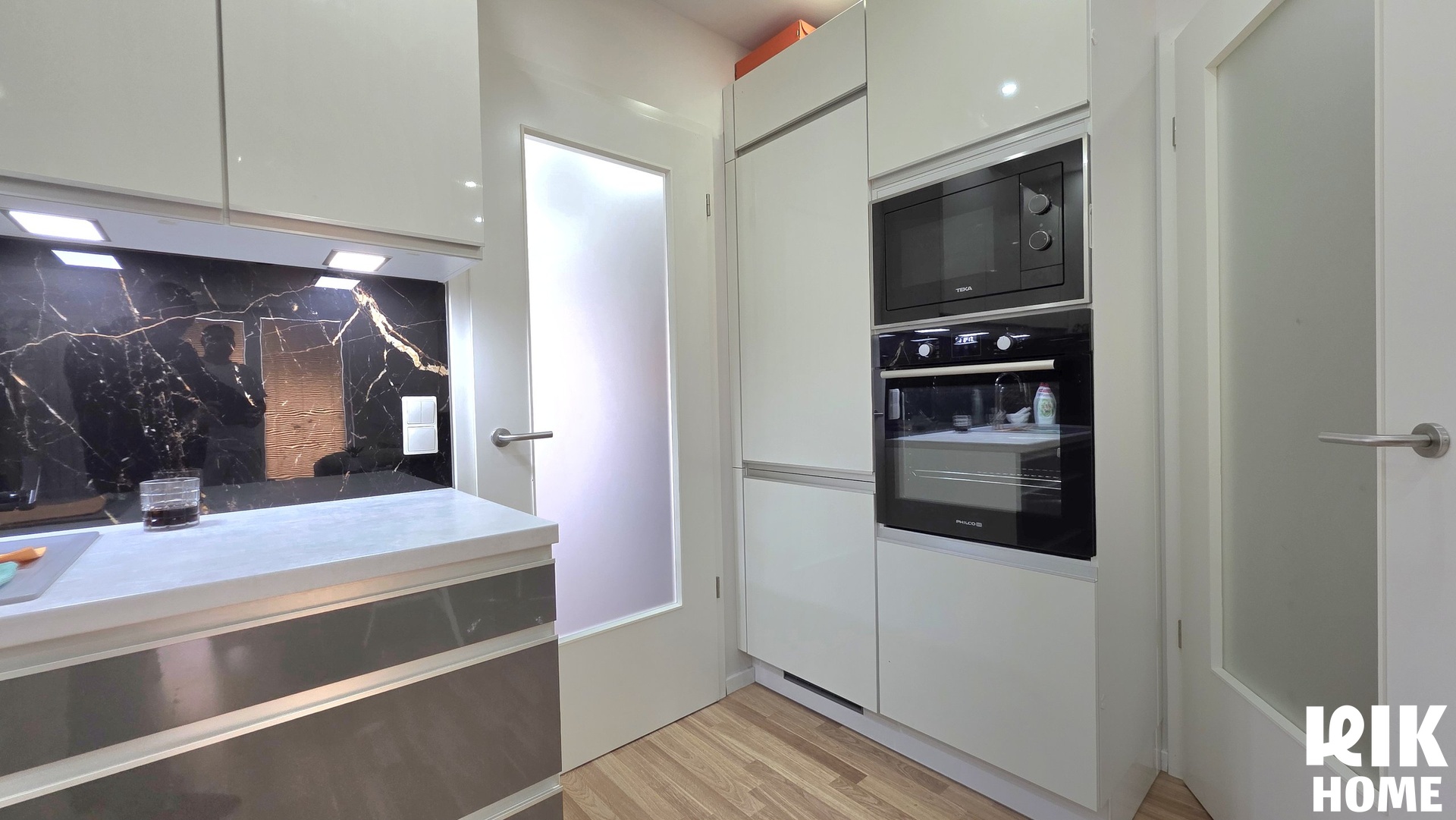 Obývací pokoj je propojen s prostorným kuchyňským koutem, ve kterém můžete připravovat ty nejlepší pokrmy pro své blízké. Z obývacího pokoje je rovněž přímý vstup na lodžii, kde si v letních večerech můžete vychutnat sklenku vína nebo ráno šálek kávy.