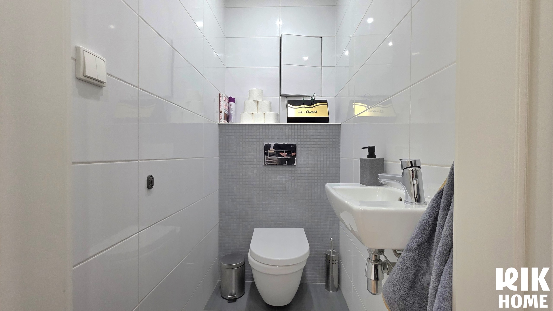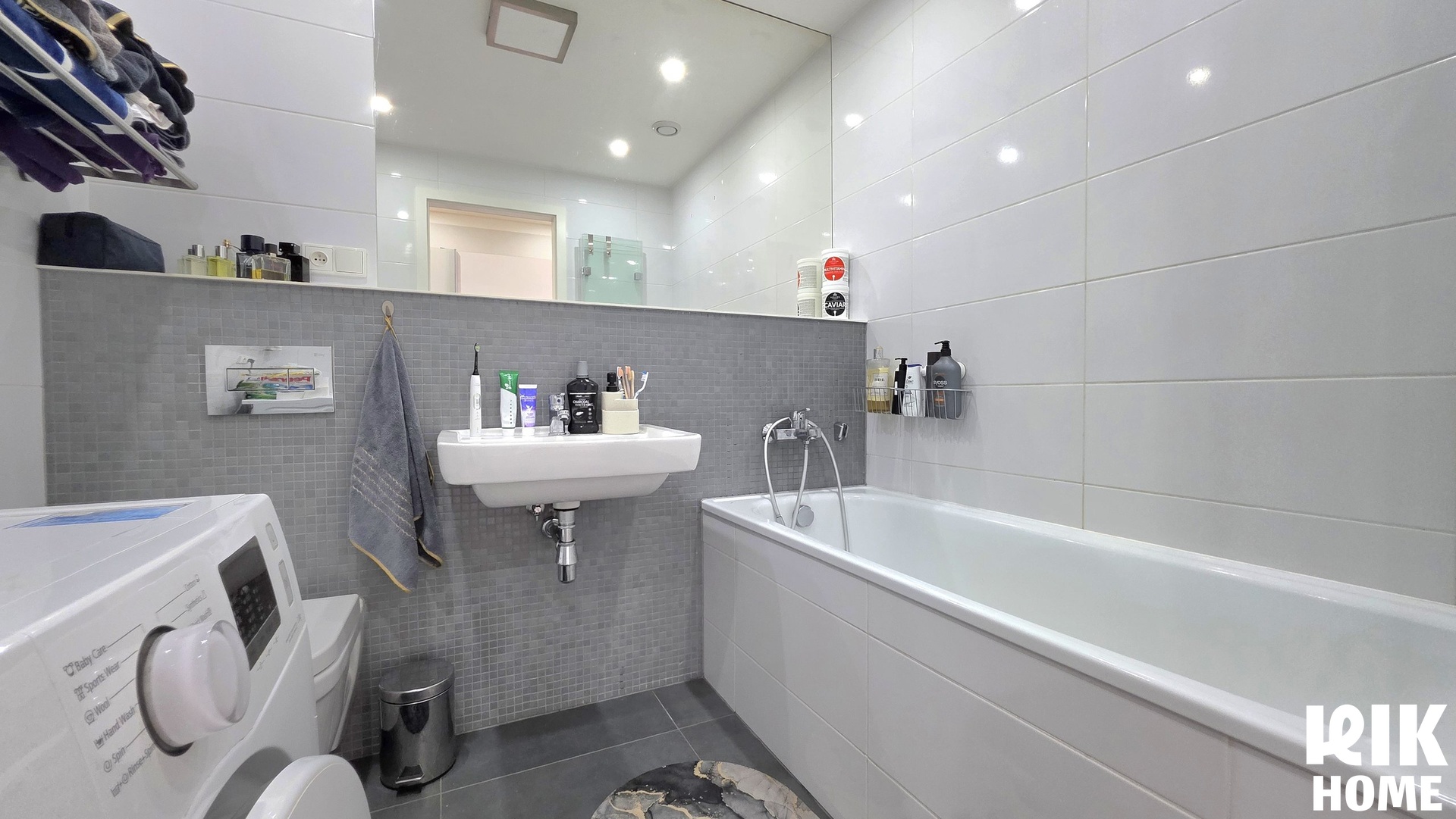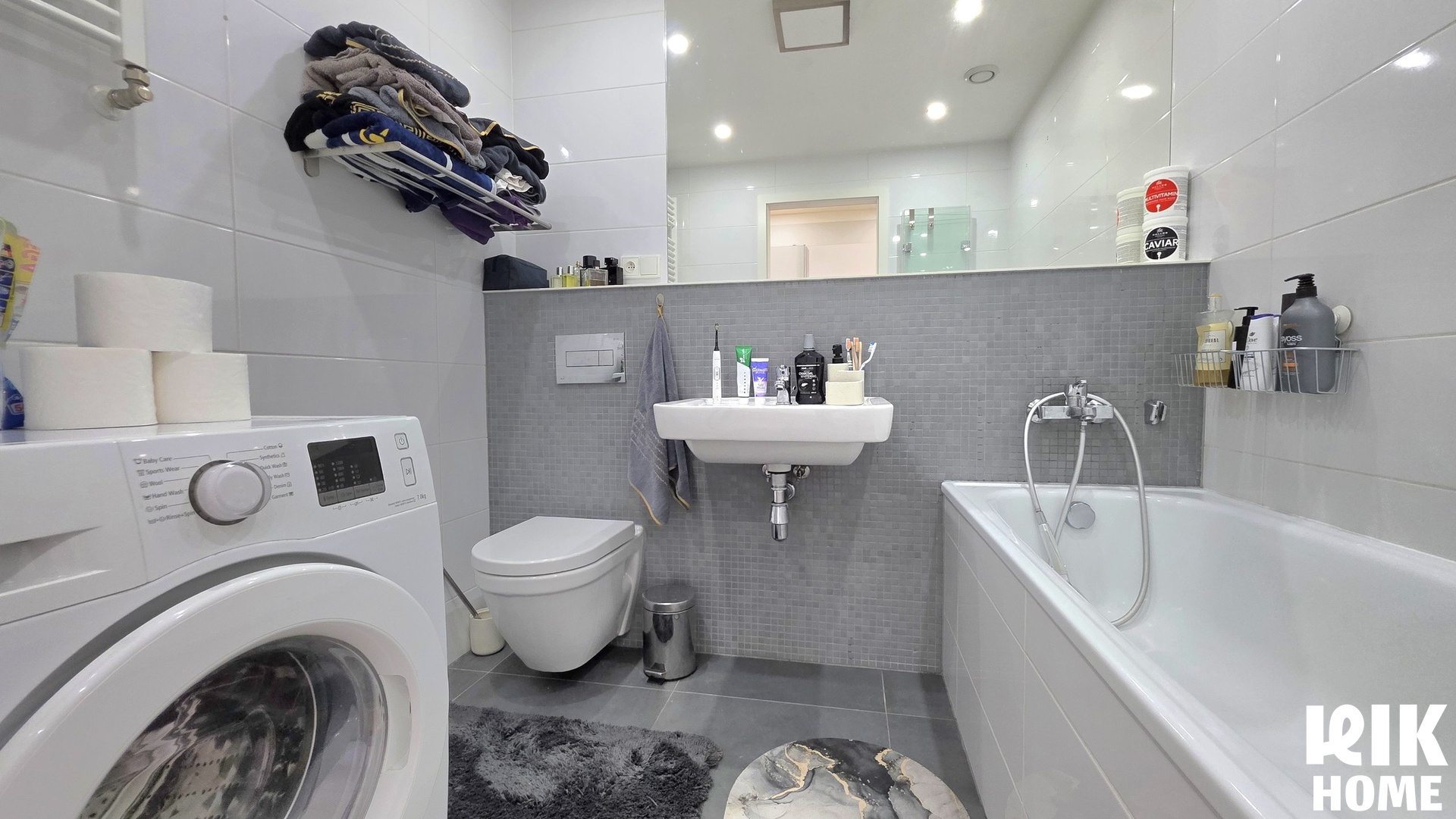 Samostatná toaleta je oddělena od koupelny, která je vybavena kvalitní automatickou pračkou.