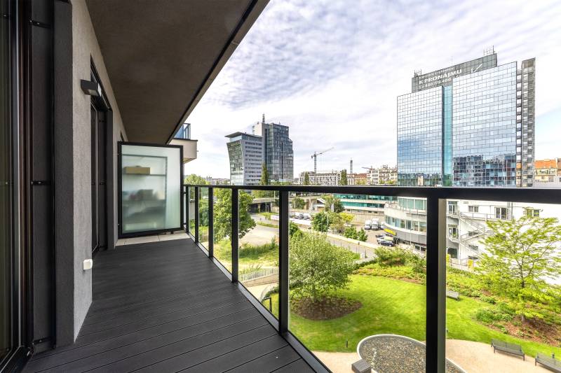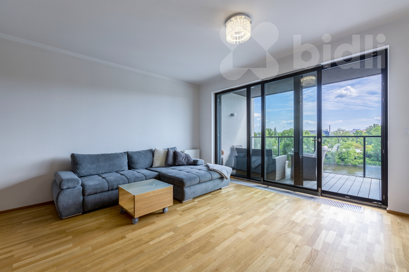 Exkluzivní a moderní byt 3+kk s prostornou terasou a balkonem, situovaný v 5.NP. prestižního rezidenčního komplexu Marina Island na holešovickém poloostrově přímo u řeky Vltavy, pouhých 8 minut od centra Prahy. K bytu náleží sklep a parkovací stání v suterénu domu. Bytu vévodí prostorná terasa. Svojí polohou ve vyšším patře je zachováno dostatečné soukromí a zároveň si užíváte dokonalý výhled na řeku i město.