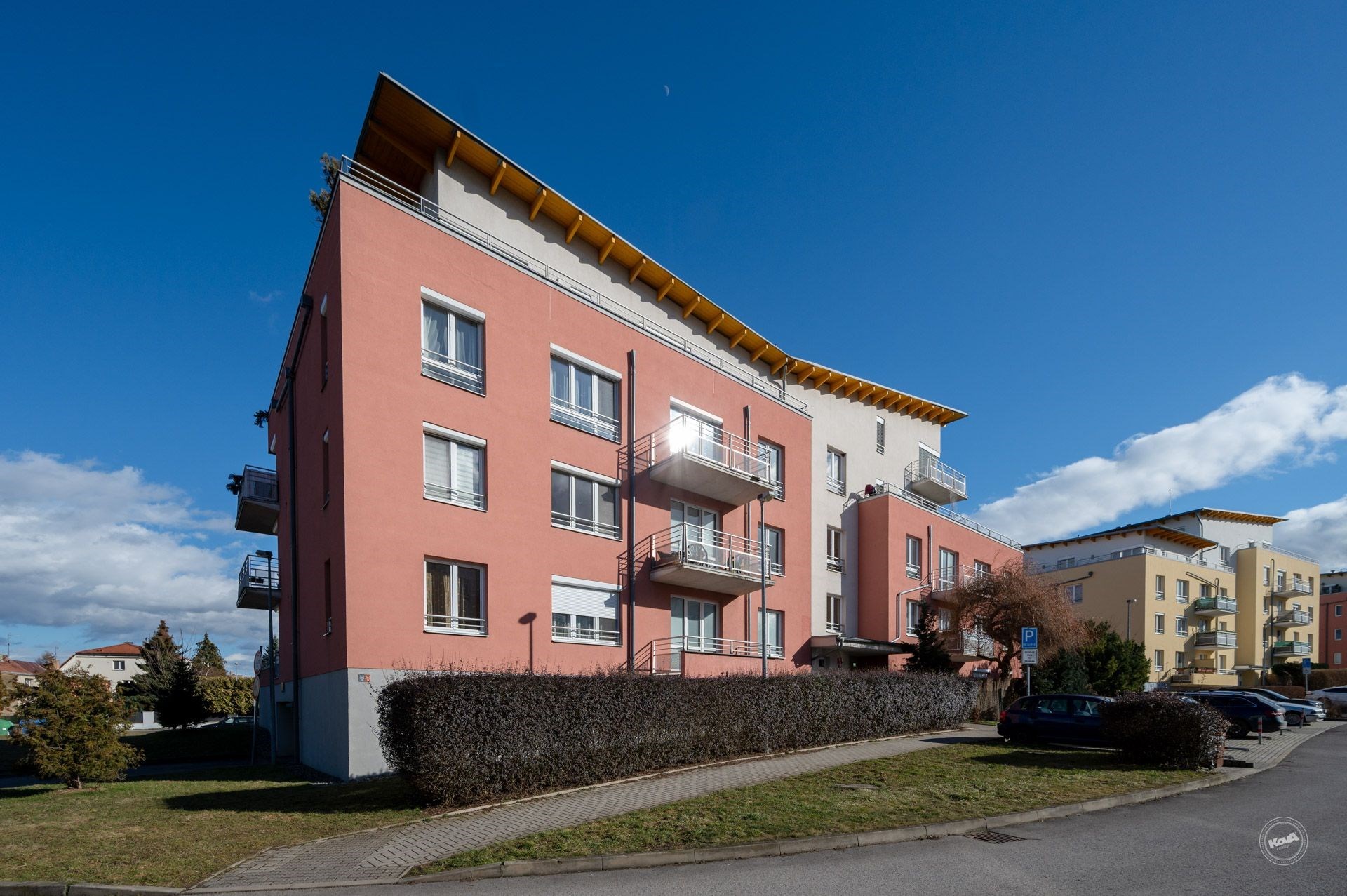 K bytu náleží balkon, sklepní kóje a garážové stání v domě
