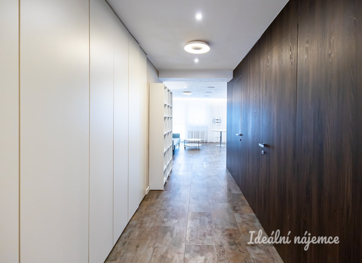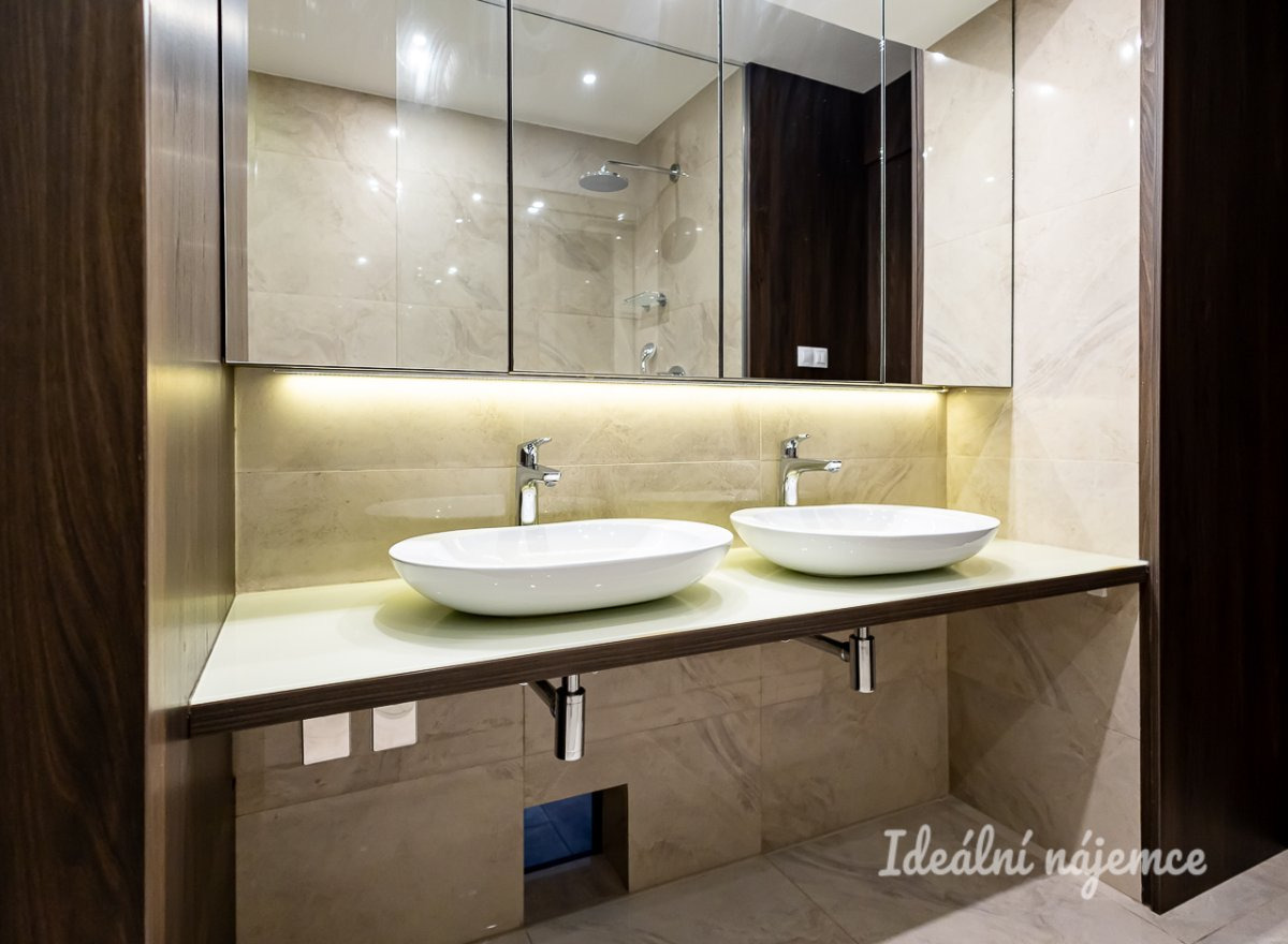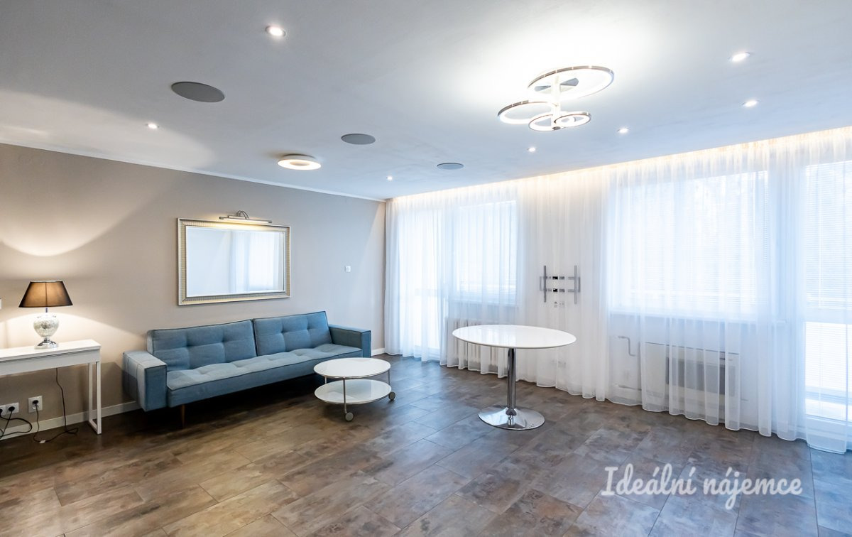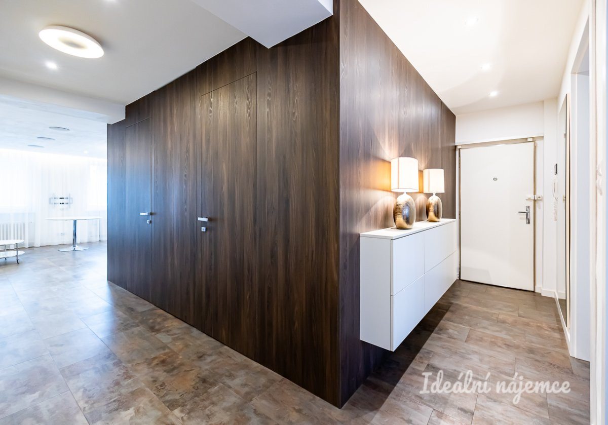 Byt prošel zdařilou rekonstrukcí a nabízí se částečně vybavený kvalitním nábytkem, designovými svítidly a komfortními elektronickými doplňky: klimatizace, televize, AV receiver, vestavné podhledové reproduktory, chytré osvětlení, alarm, intercom. Ve všech místnostech jsou k dispozici již propojené a spolehlivé datové zásuvky LAN a rozvody kabelové TV. Na bytě je zavedeno internetové připojení o rychlosti 500 Mb/s, včetně základních programů kabelové televize. Byt je pokryt kvalitním wi-fi signálem.