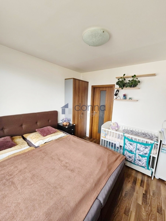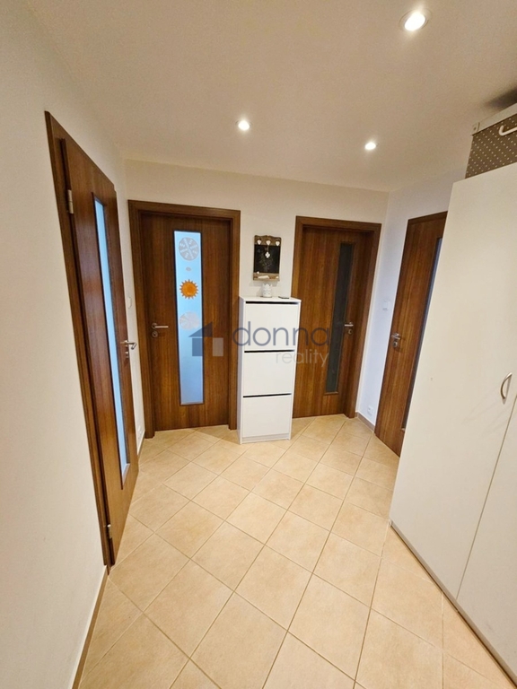 Prostorný obývací pokoj spojený s kuchyní, dvě ložnice, koupelna se sprchovým koutem a samostatna toaleta. Lodžie je zasklená.