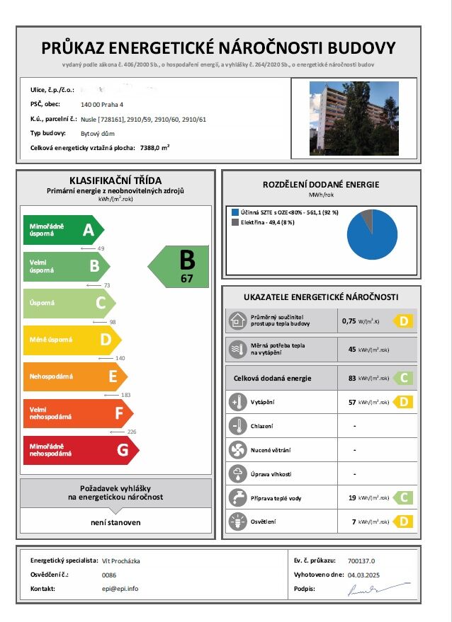 Vytápění bytu je centrální, ovládané na dálku přes aplikaci.