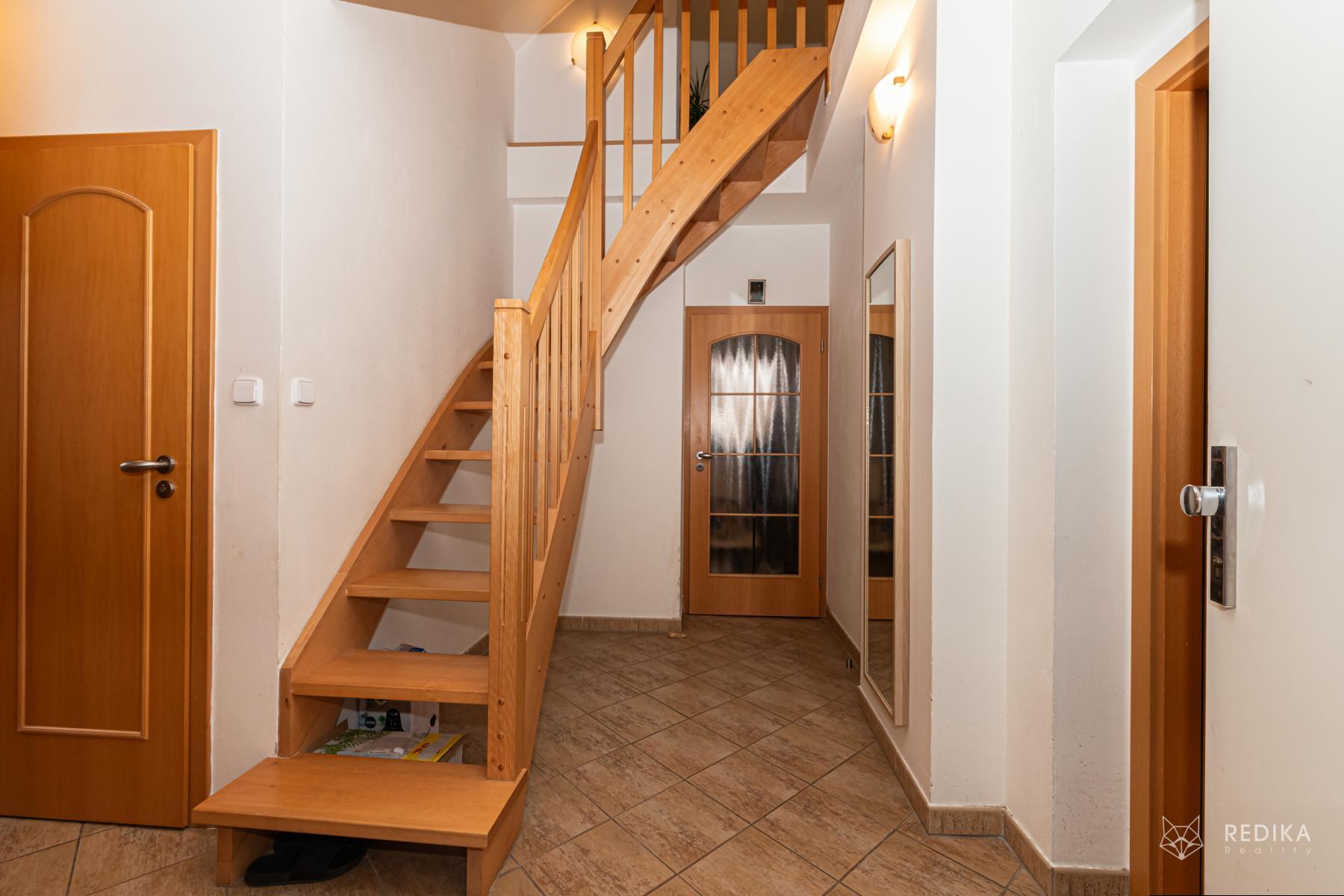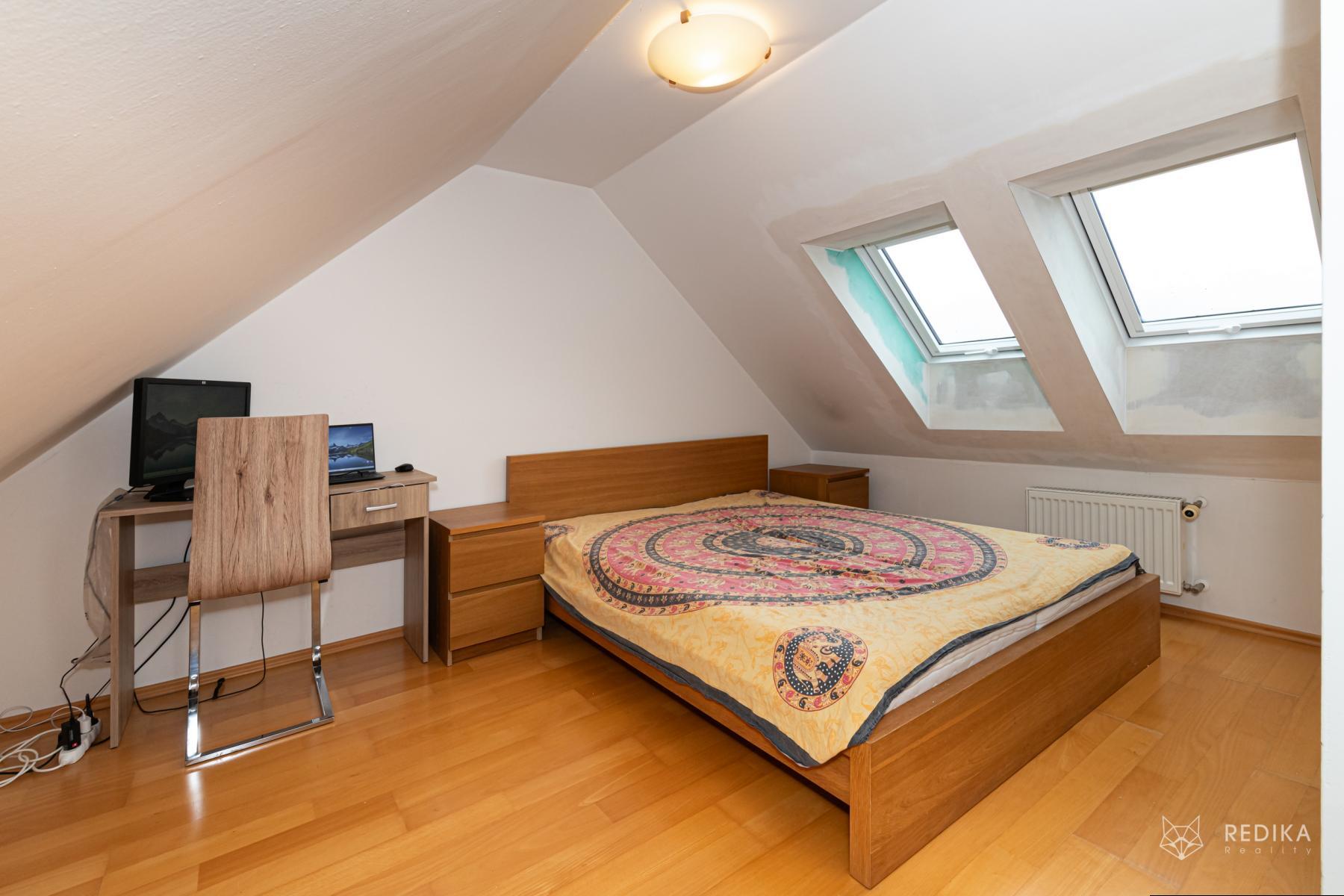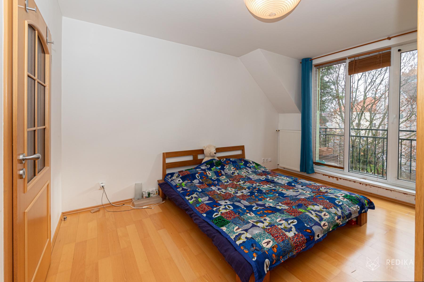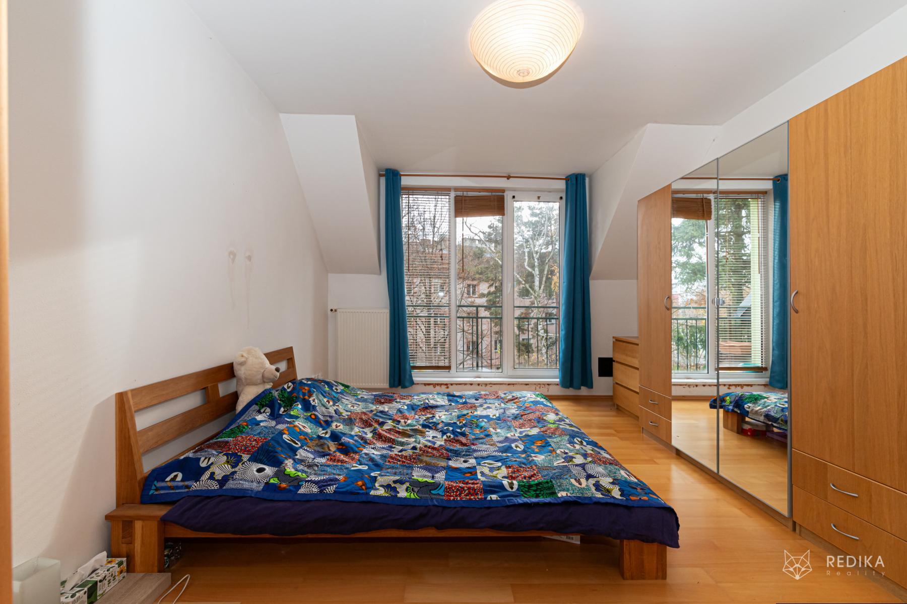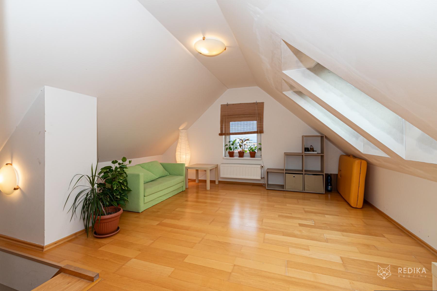 Nabízíme k nájmu neobyčejný a velkoryse pojatý 3+KK mezonet, 97 m2, s balkónem, sklepem cca 6m2, Vamberská ul. ve 3NP. a 4NP. revitalizovaného domu v Letňanech. Moderně vybavený světlý byt má celkovou výměru 97 m2. V přízemí bytu je umístěna předsíň s vestavěnými skříněmi, WC, toaleta a vana s vířivkou. Z předsíně vstoupíte jedněmi dveřmi do vzdušné ložnice s francouzským oknem na balkón a druhými dveřmi do obývacího prostoru s kuchyňským koutem, jídelnou a obývací částí ( 3.NP o celkové výměře 67 m2 ) a odtud se po dřevěném schodišti dostanete do patra podkrovního prostoru o výměře 30 m2, kde je umístěna pracovna a pokoj pro hosty.