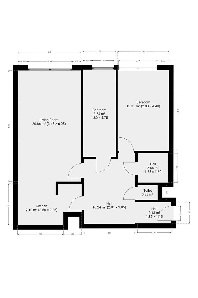 V obývacím pokoji a v obou ložnících jsou plovoucí podlahy. V předsíni, koupelně a toaletě najdeme dlažbu.