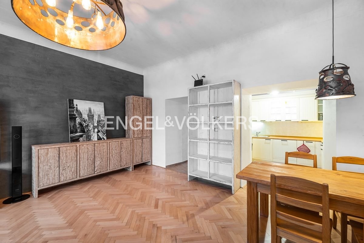 Unikátní kompletně zrekonstruovaný byt se nachází ve 3. nadzemním podlaží jednoho z nejstarších obytných domů v Praze, jemuž se také říká Saský dům.
