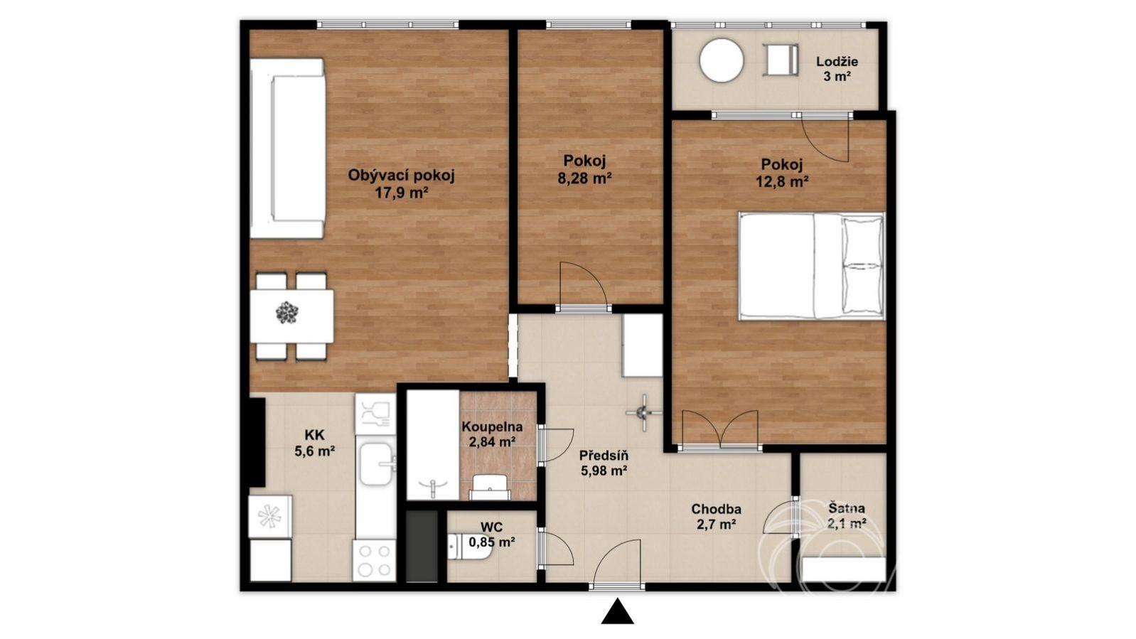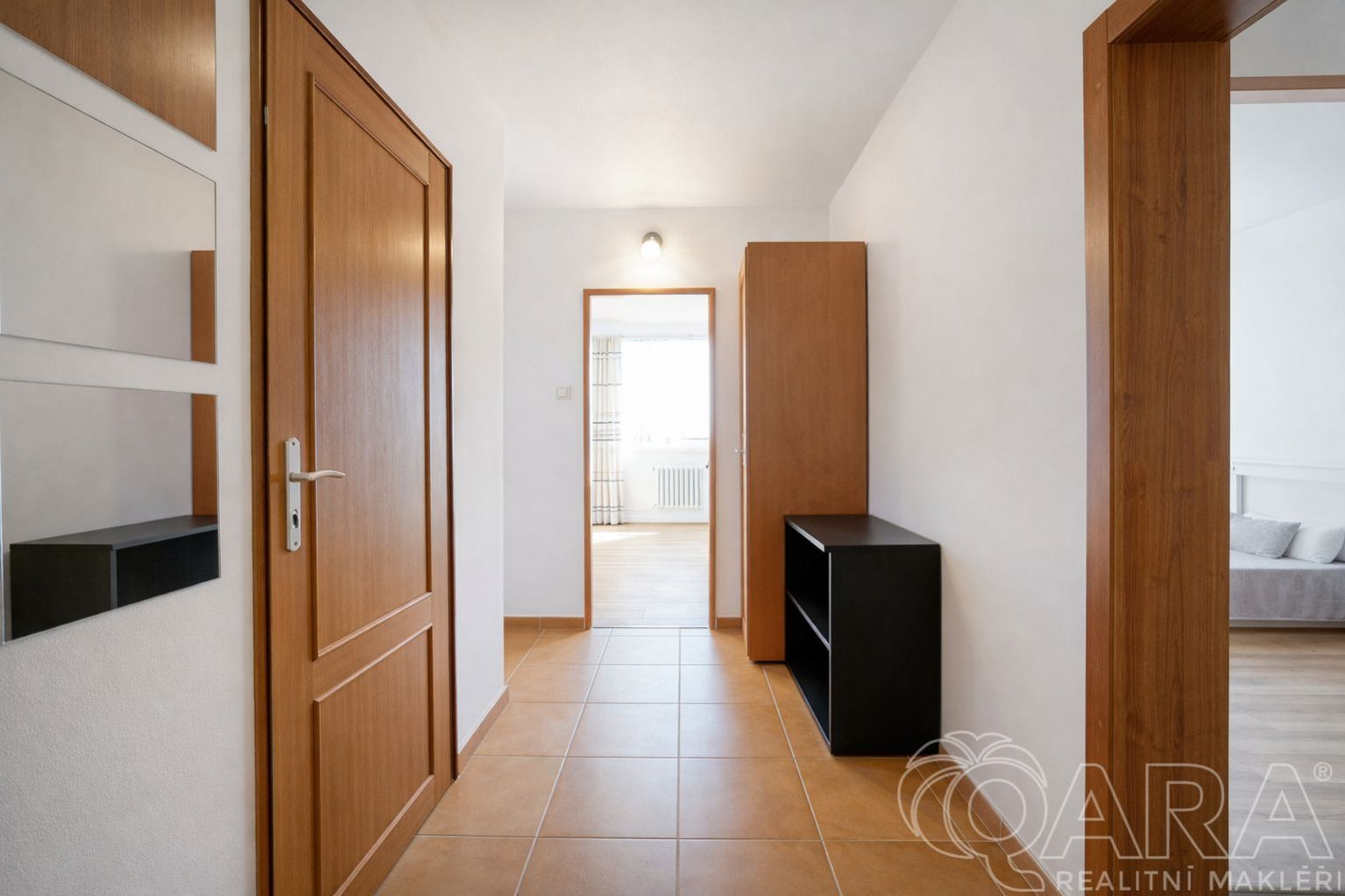 Dispozice bytu nabízí komfortní bydlení s dostatkem prostoru i úložných možností. Velkým benefitem je samostatná šatna, která výrazně zvyšuje praktičnost bytu. Byt se pronajímá částečně zařízený k dispozici je jídelní stůl se židlemi a postel (možnost včetně matrace).