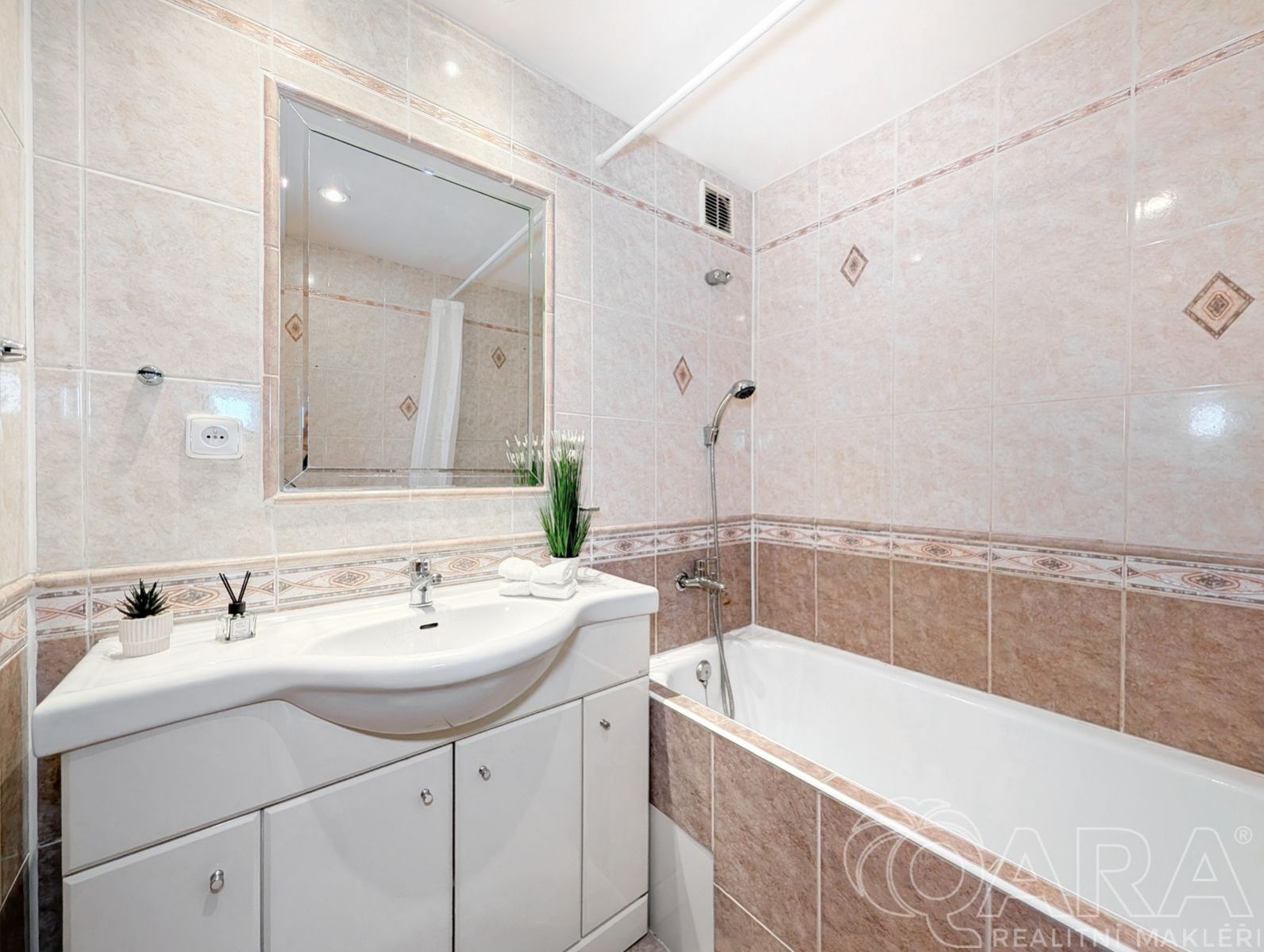 Koupelna je vybavena vanou, umyvadlem a přípojkou na pračku, toaleta je samostatná. Příjemným bonusem je zasklená lodžie s pěkným výhledem, ideální pro odpočinek.