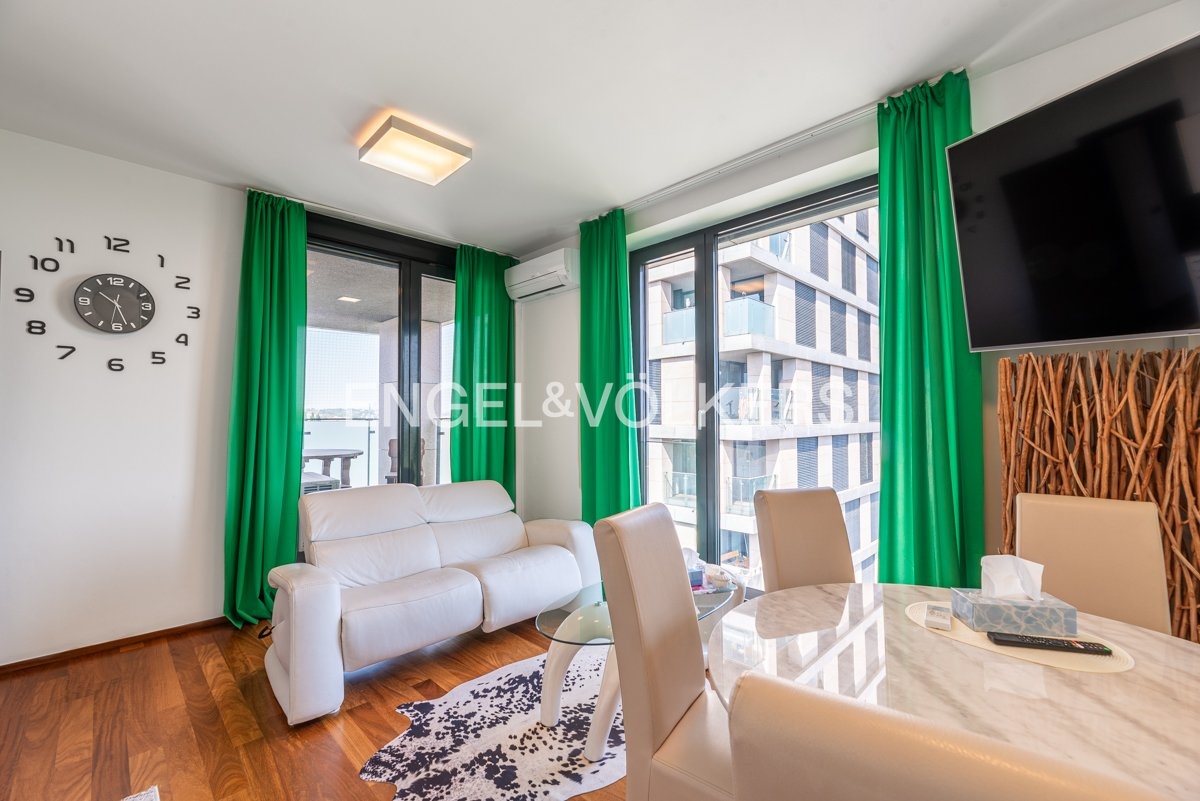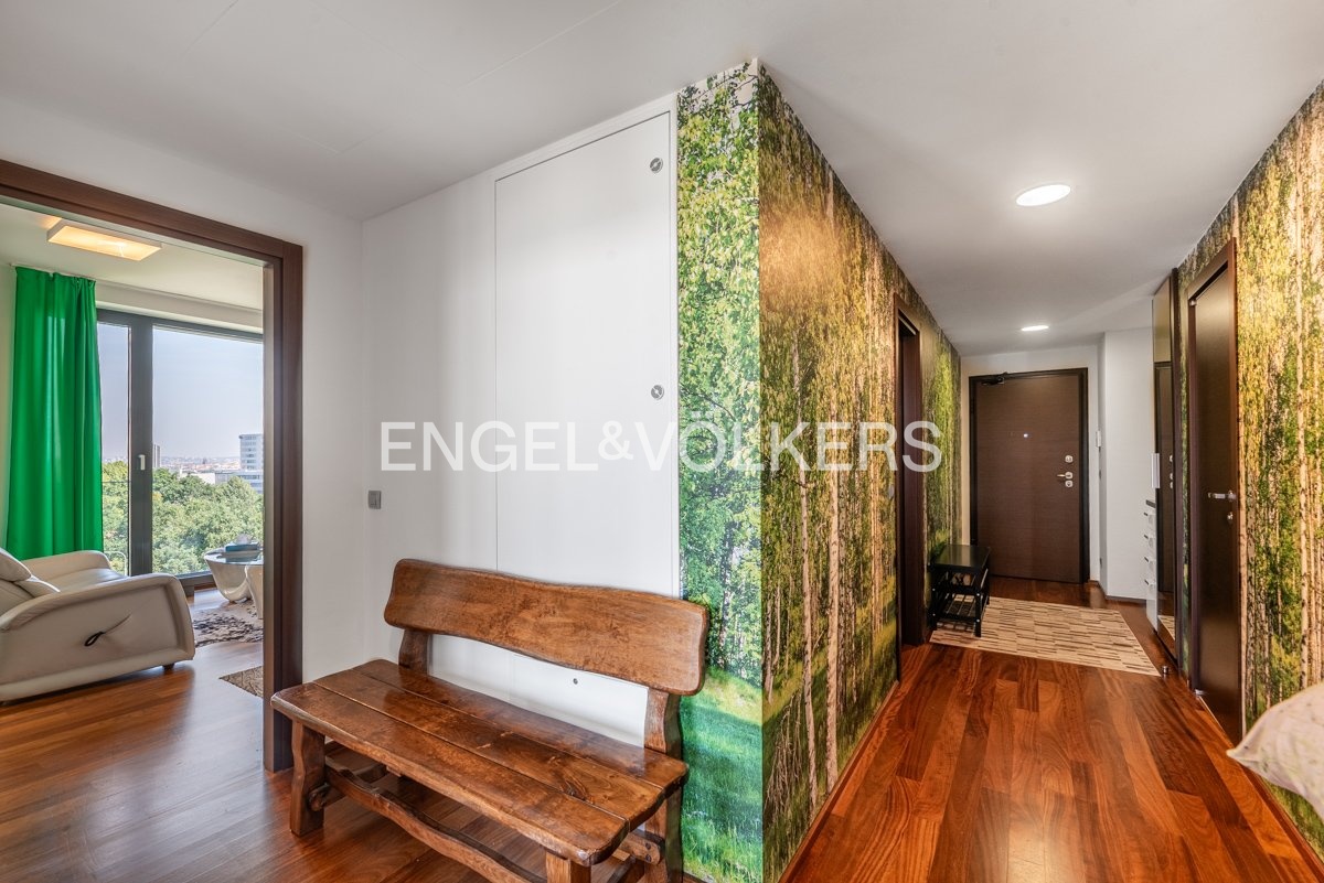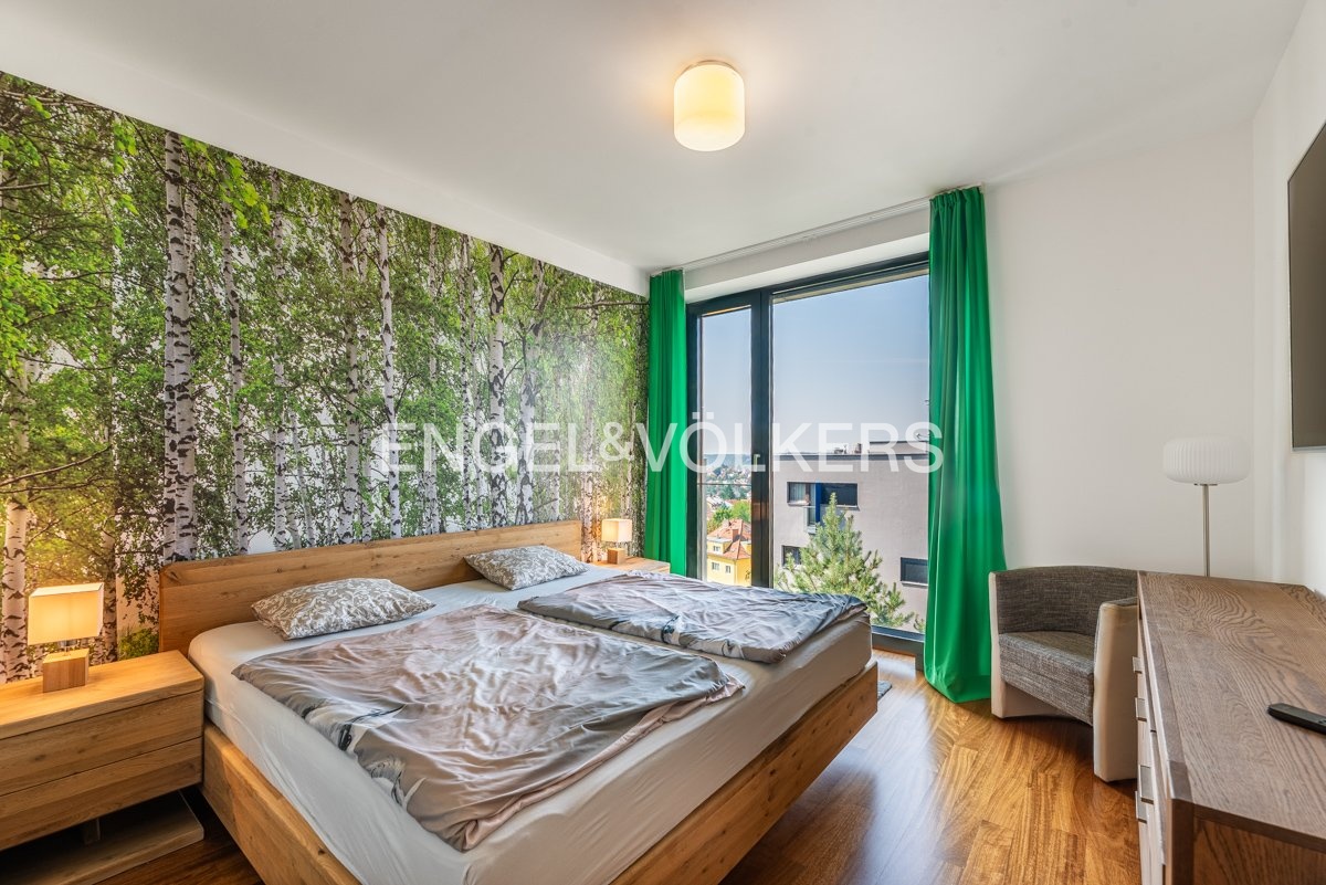 K okamžitému pronájmu nabízíme kompletně vybavený byt 3+kk o ploše 102 m² s balkonem, který se nachází v 5. patře atraktivního rezidenčního projektu Rezidence Kavčí hory v blízkosti obchodního centra Arkády a business centra na Pankráci.