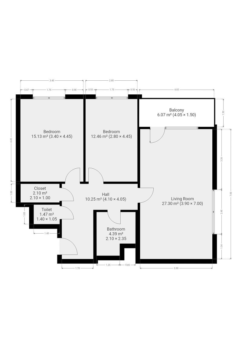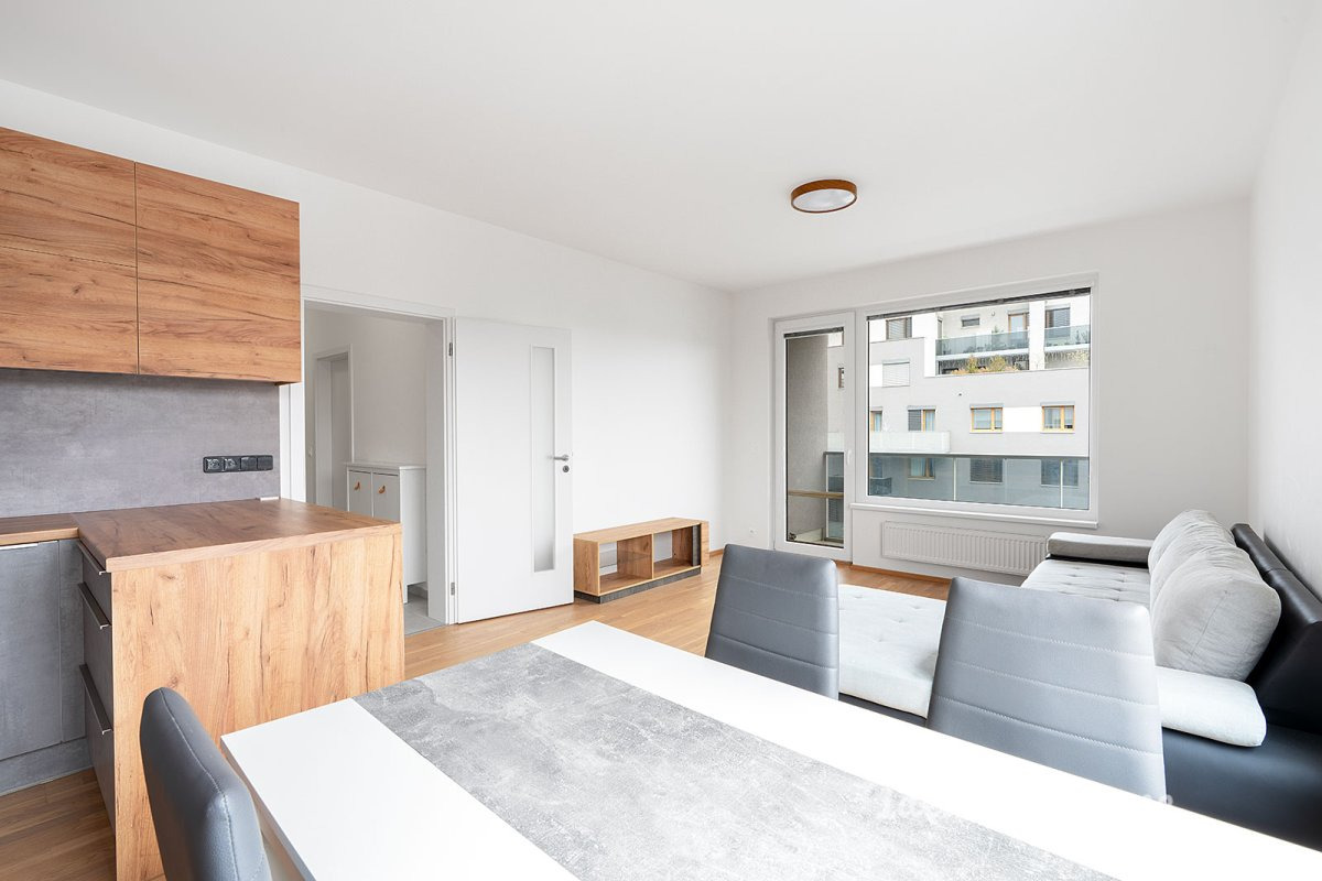 Srdcem bytu je obývací pokoj s plně vybaveným kuchyňským koutem, který zahrnuje lednici s mrazákem, elektrickou troubu, varnou desku, digestoř i myčku. Z obývací části, kde je již připravena pohodlná sedací souprava a jídelní kout, se vchází přímo na balkon s příjemným výhledem. Soukromí zajišťují dva samostatné pokoje, které flexibilně využijete jako ložnici, dětský pokoj nebo klidnou pracovnu. Praktické řešení doplňuje koupelna s vanou i pračkou a samostatná toaleta.