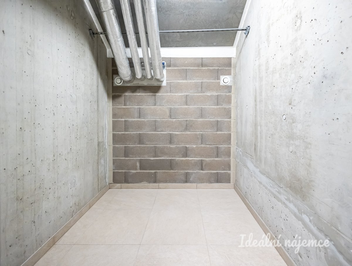V předsíni se nachází vestavěná šatní skříň s věšákem. Z předsíně se dostaneme do obývacího pokoje s kuchyňským koutem. Kuchyně se nabízí plně vybavena vestavnými spotřebiči - lednice s mrazákem, myčka nádobí, indukční varná deska, elektrická trouba a digestoř značek Electrolux a Liebherr. Obývací pokoj i ložnice jsou nezařízené. V koupelně se nachází sprchový kout, závěsná sanita a přípojka s vývodem na pračku. Okna jsou zde kvalitní trojskla s výbornou tepelnou i zvukovou izolací.