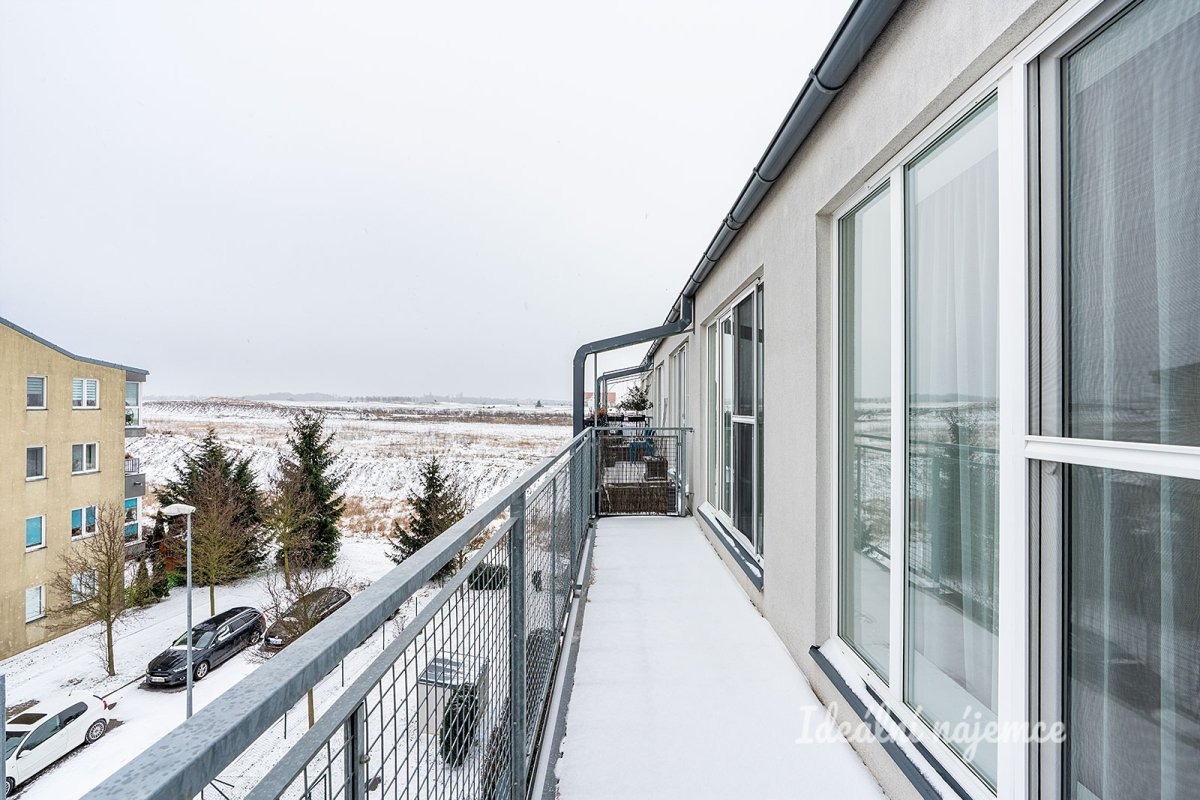 Dispozičně byt nabízí prostornou předsíň i šatnu, komoru s policemi i plně vybavenou koupelnu. Hlavní dominantou je obývací pokoj s kuchyňskou linkou ve které jsou všechny potřebné spotřebiče včetně myčky. Obývací pokoj je spojen s prostorným balkonem, který nabízí nádherný výhled třeba i k večernímu posezení. Druhý pokoj taktéž nabízí vstup na balkon a také úložné prostory v podobě vestavěné skříně. Třetím pokojem je pak šikovně situovaná ložnice