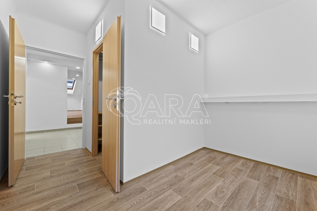 Další dva menší pokoje jsou ideální jako ložnice, dětský pokoj, pracovna či pokoj pro hosty, přičemž jeden z nich nabízí praktický úložný prostor v podobě patra. K jedné z ložnic náleží také samostatná šatna.Byt disponuje dvěma koupelnami vybavenými vanou, sprchovým koutem a toaletou, dále je k dispozici samostatná toaleta. Pračka je součástí vybavení.