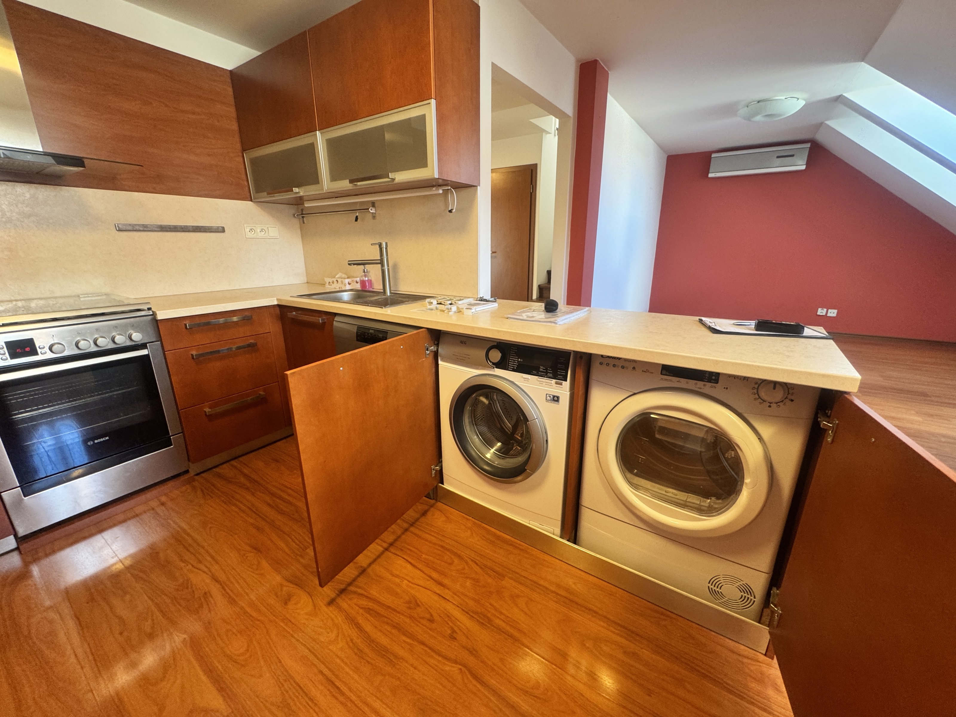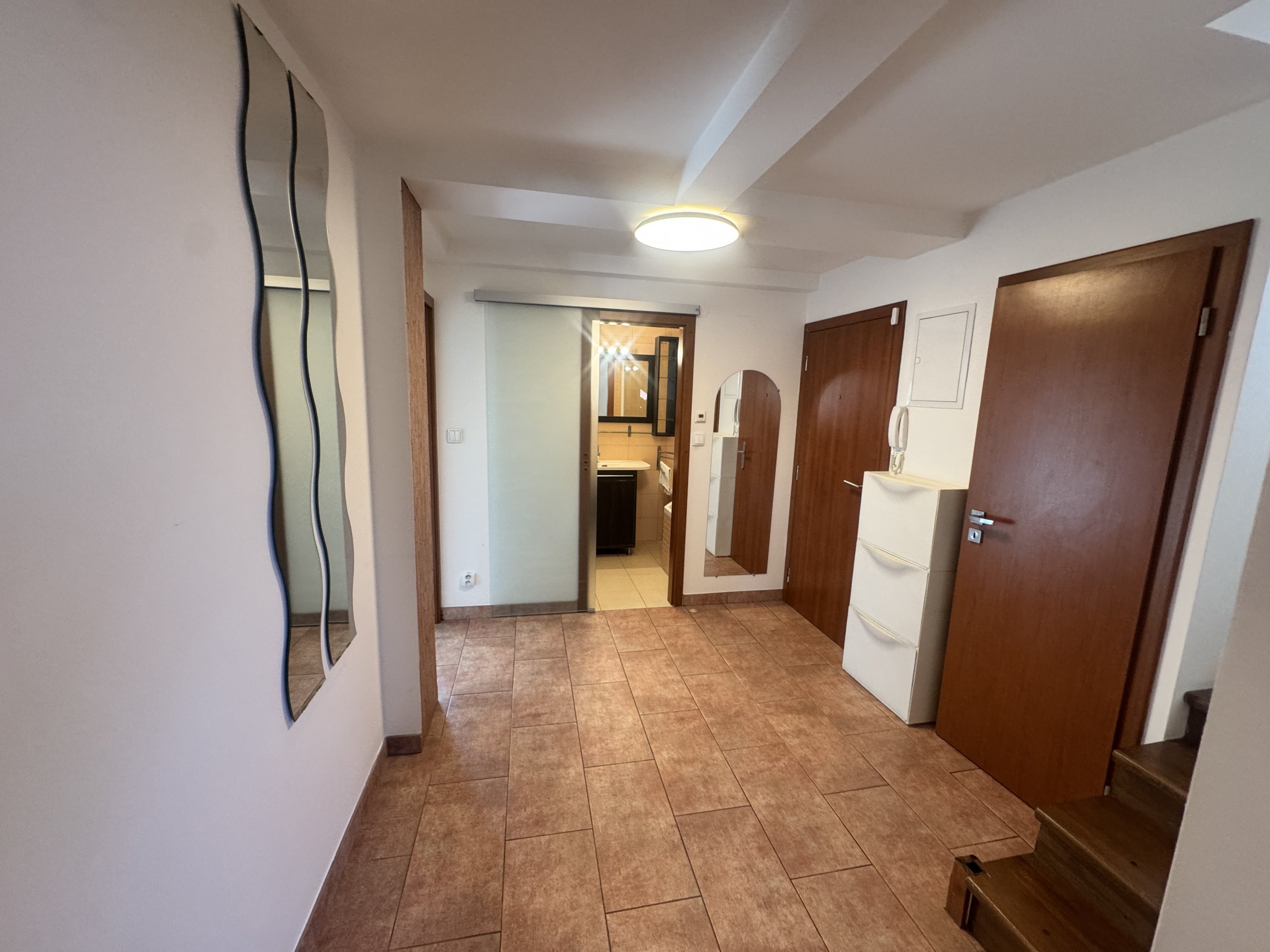 Nabízíme Vám k dlouhodobému pronájmu půdní mezonetový byt 4+kk 119 m2, v Praze 10, Vršovice, ulice Moskevská. Byt po celkové nákladné rekonstrukci se nachází ve 5. patře cihlového domu bez výtahu. Vytápění etážovým kotlem, včetně dodávky teplé vody(nízké náklady), ve všech pokojích klima jednotky, úložné prostory a vestavěné skříně( foto vybavení v galerii). Okna dřevěná špaletová, podlahy plovoucí, vinyl a dlažba. Dispozice - pokoj+kk 35m2, pokoj 20, předsíň 7m2, komora 1,5m2, koupelna s WC 4m2. Mezonet - pokoj 19,5m2, pokoj 20m2, chodba 10,5m2, samostatné WC 1,7m2. Kuchyň s rohovou kuchyňskou linkou včetně všech značkových spotřebičů, myčka, pračka, sušička, el. trouba s plynovou varnou deskou, ostatní zařízení a vybavení v bytě není. Náklady na služby 750,-Kč(1osoba), elektřina a plyn se převádí na nájemce(celkem cca 4tis./kč/měs). Provize RK ve výši jednoho nájmu bez služeb, kauce není požadována. Veškerá občanská vybavenost v místě(nákupní centrum, supermarket), dopravní dostupnost výborná. Volný ihned! Majitel si vyhrazuje právo výběru nájemce, dle svého uvážení. Doporučujeme.