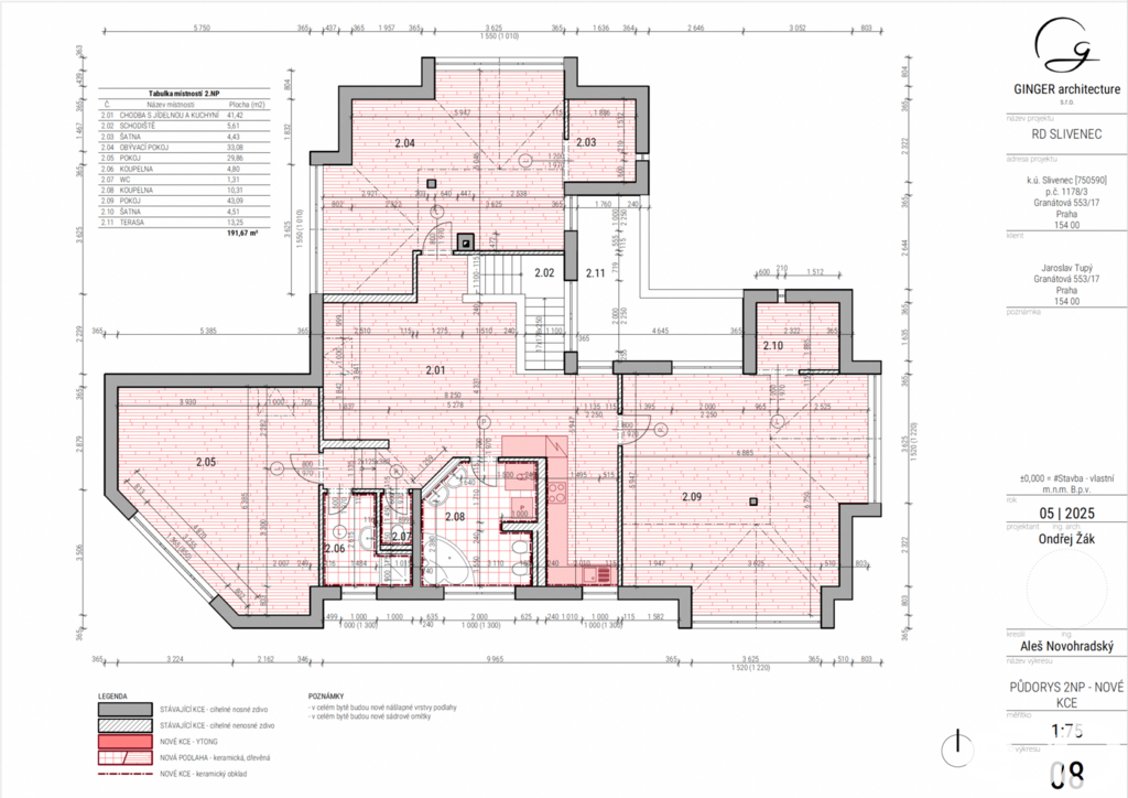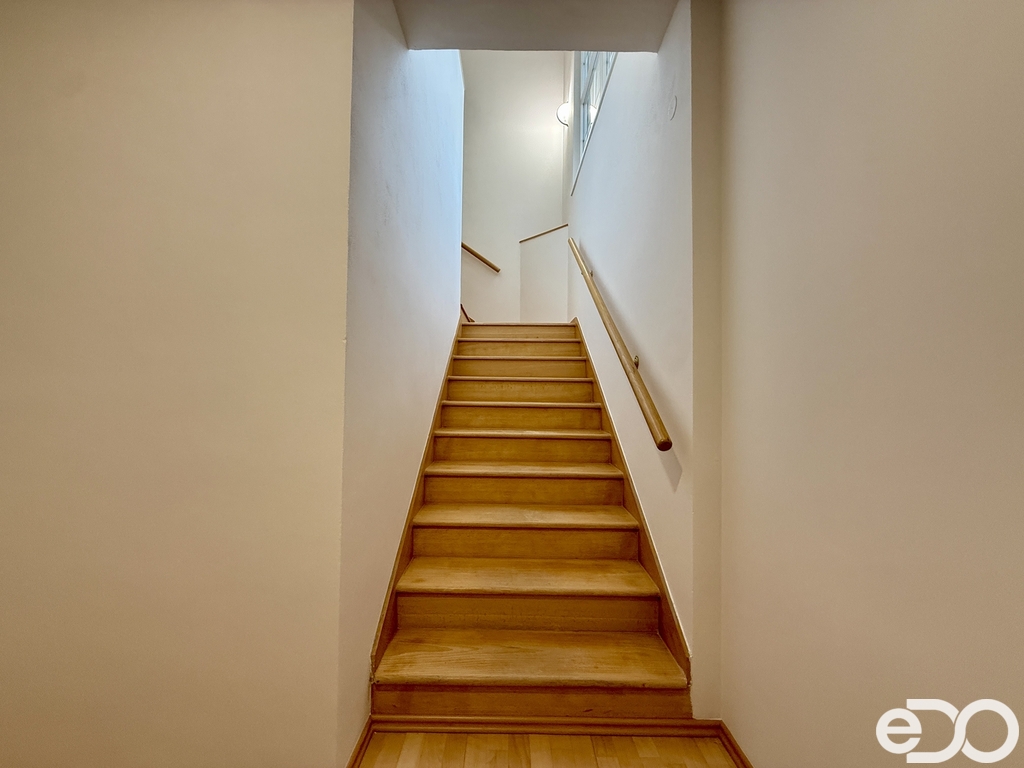 Byt se nachází v 1. patře (2. NP) domu, který byl rozdělen na tři samostatné bytové jednotky. Jedná se o podkrovní byt o dispozici 4+kk. Díky podkrovnímu řešení je byt světlý a vzdušný, je však potřeba počítat s tím, že uvedená výměra je ovlivněna zkosenými stěnami, které ale místy snižují plnohodnotně využitelnou podlahovou plochu.