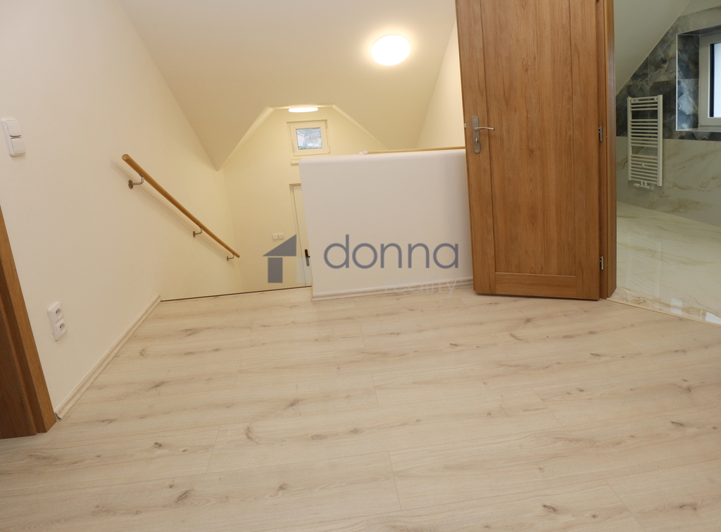 Nabízíme pronájem nově zrekonstruovaného podkrovního bytu 4+kk, o ploše 71m2 + podkroví 23m2, s předzahrádkou 63m2, v 1. patře rodinného domu, ulice V Nových Bohnicích, Praha 8 - Bohnice.