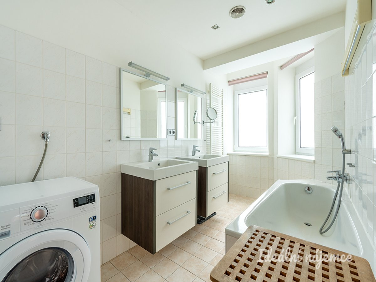 V bytě je dále velký obývací pokoj společný s kuchyňským koutem a pracovna / pokoj pro hosty, který navazuje na velmi prostornou šatnu.