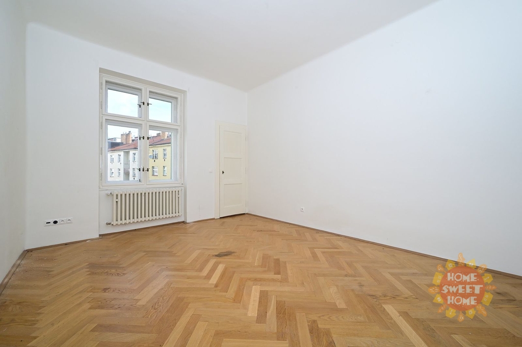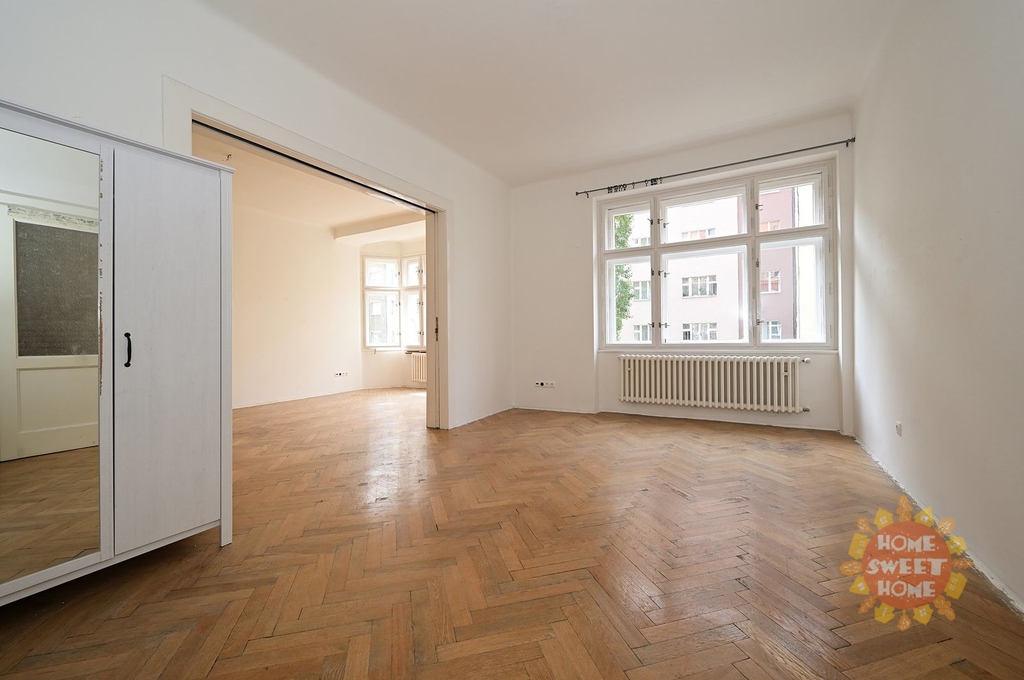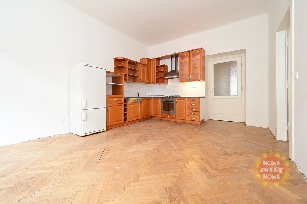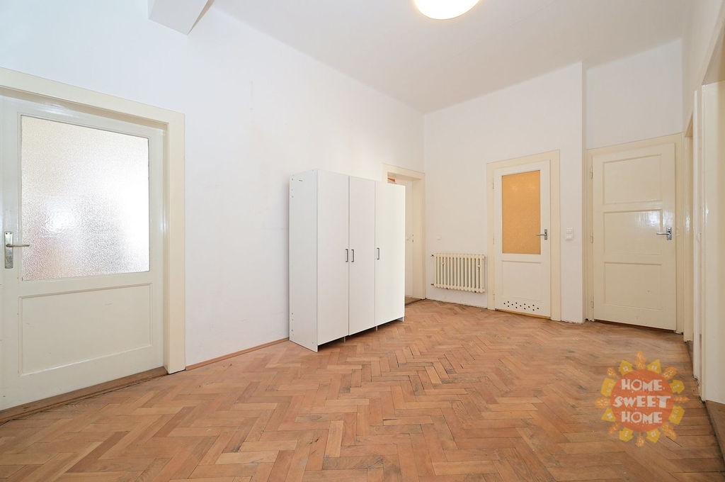 Byt sestává ze vstupní haly, prostorného obývacího pokoje s kuchyní, dvou průchozích pokojů s orientací do ulice a dalších dvou samostatných pokojů do dvora. Byt má dvě koupelny - jednu s vanou, jednu se sprchovým koutem a WC a další samostatnou toaletu. Byt je vybavený kuchyňskou linkou s elektrickým sporákem. troubou, myčkou nádobí a lednicí s mrazákem. Dům je ve velmi dobrém a udržovaném stavu - po rekonstrukci společných prostor, včetně nového výtahu.
