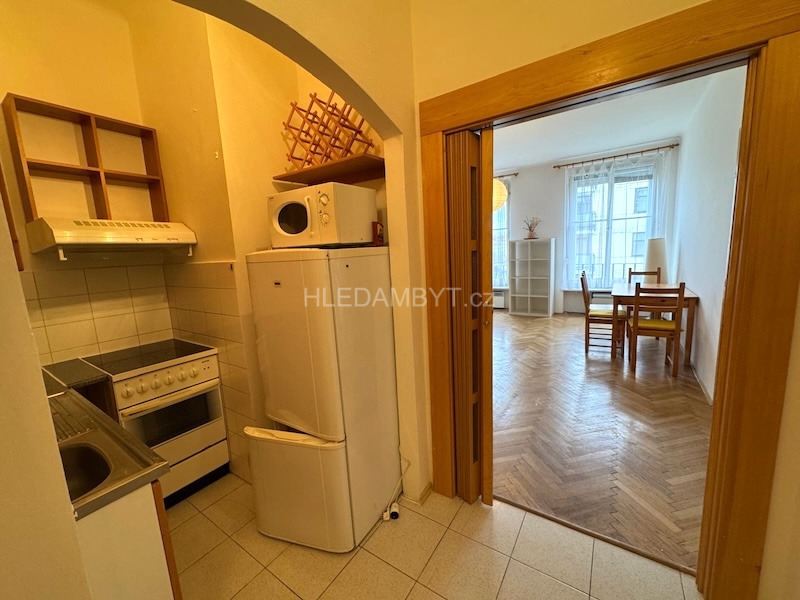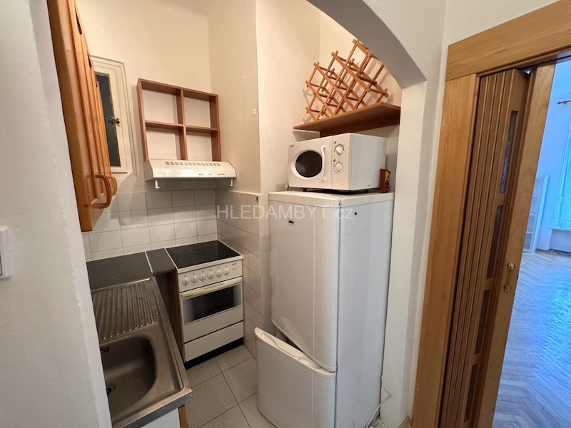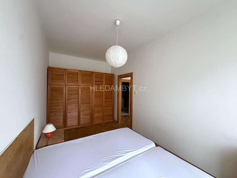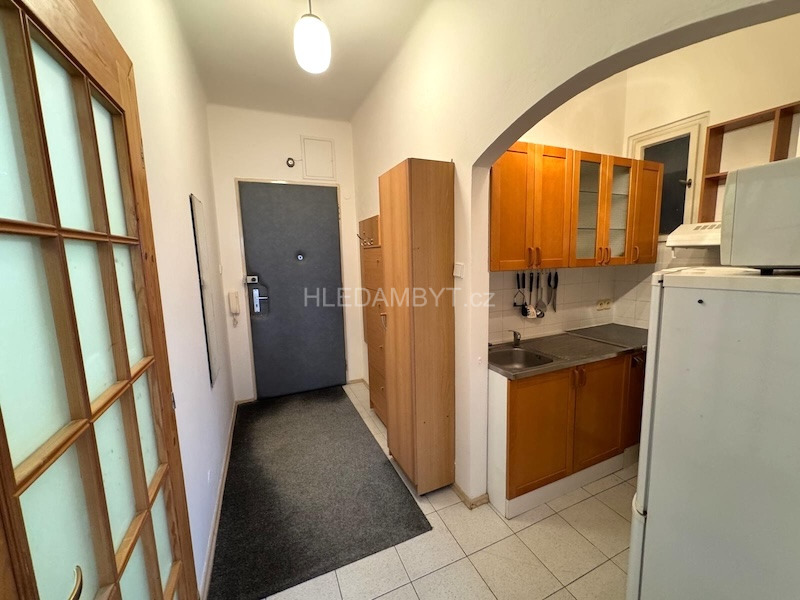 Pronájem bytu ve velice dobrém stavu, který tímto nabízíme je k nastěhování ihned a lze dlouhodobě. Jedná se o byt v pátém patře cihlového domu s výtahem, okna orientována do klidné ulice na západní stranu. Je zde kuchyňská linka, elektrický sporák, lednice, mikrovlnná trouba, pračka, postel, noční stolky, jídelní stůl, židle, nábytková stěna, knihovna, komoda a šatní skříň. Na podlahách dlažba a parkety. Koupelna zděná se sprchovým koutem a WC dohromady. Vhodné pro 2 osoby. MHD: 2 minuty chůzí na metro Flora.