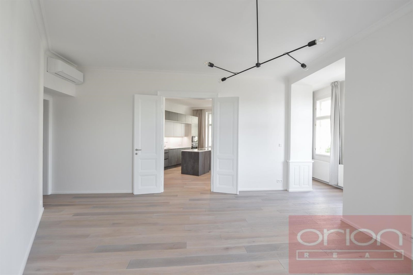 Luxusní, klimatizovaný byt 3+kk (138 m²) ve 2. patře zrekonstruovaného secesního domu s výtahem, v populární lokalitě Praha 3 - Vinohrady, kousek od stanice metra Jiřího z Poděbrad. Byt bude kompletně zařízený, dispozice nabízí vstupní halu, obývací pokoj s jídelní částí a s plně vybavenou kuchyní, 2 ložnice, 2 koupelny se sprchovým koutem, vanou a toaletou, a samostatnou toaletu. Na podlahách jsou dubové parkety a dlažba, byt je vybaven vestavěnými skříněmi, vinotékou, pračkou, sušičkou, má bezpečnostní vstupní dveře, plynový kotel. V blízkosti domu se nachází oblíbený park Riegrovy sady, restaurace, obchody, na náměstí Jiřího z Poděbrad se pravidelně konají farmářské trhy. Je odtud skvělé dopravní spojení do centra, stanice metra a tramvaje náměstí Jiřího z Poděbrad jsou pár minut pěší chůzí. Okolí nabízí spoustu zeleně, ideální podmínky pro sportovní vyžití i relaxaci. Nájemné 3.665 EUR měsíčně. Jedno parkovací místo v podzemní garáži musí být pronajato s bytem za poplatek 6.500+DPH 21% měsíčně.