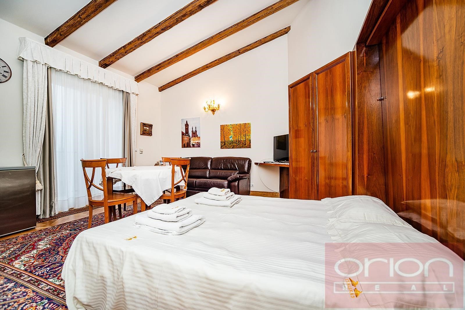 Nabízíme k pronájmu luxusní zařízený byt 1+kk s balkonem ve 4. patře neorenesančního domu Rezidence Italská z konce 19. století s udržovanou soukromou zahradou s vyhřívaným bazénem ve vyhledávané lokalitě Praha 2 - Vinohrady. Rezidenční dům je po kompletní rekonstrukci se zachováním všech architektonických prvků a je vybaven prémiovými a luxusními materiály. Nadstardantně zařízený byt o velikosti 38 m2 nabízí obývací pokoj orientovaný do vnitrobloku s výhledem na zahradu a bazén, plně vybaveným kuchyňským koutem vč. nádobí, koupelnu s vanou a s toaletou a balkon a velikosti 11 m2. Byt je vybaven italským nábytkem, ručně tkanými koberci, luxusními spotřebiči,, na podlahách jsou dřevěné parkety a dlažba. K vybavení bytu patří pračka se sušičkou, klimatizace, videotelefon, satelitní TV. Možnost zajistit pravidelný úklid bytu. V bytě jsou zachovány původní prvky. V rámci rezidence je také sauna, několikapatrové garáže, výtah, kamerový systém a ostraha. Součástí domu je vyhlášená italská cukrárna s produkty dovezenými přímo z Itálie. Možnost parkování v podzemní garáži za cenu od 200 Eur + DPH. Dům se nachází jen pár kroků od stanice metra Náměstí Míru, pár minut chůze na Václavské náměstí. V blízkosti je množství kaváren, vyhlášených restaurací, bister, lokálních obchodů, oblíbený park Riegrovy sady.