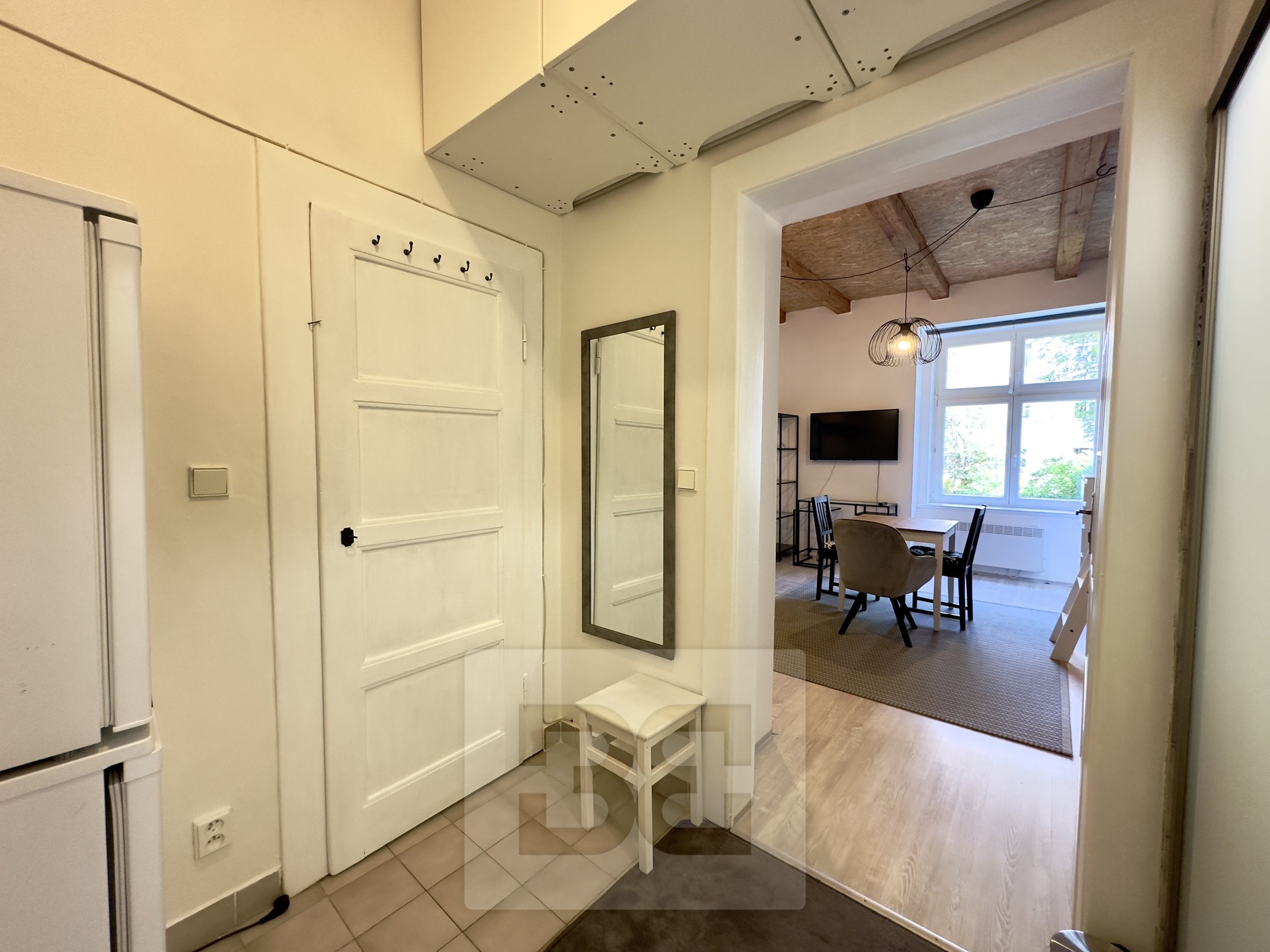 Nabízíme útulný a moderně zařízený byt 1+kk s výhledem do pěkného vnitrobloku.