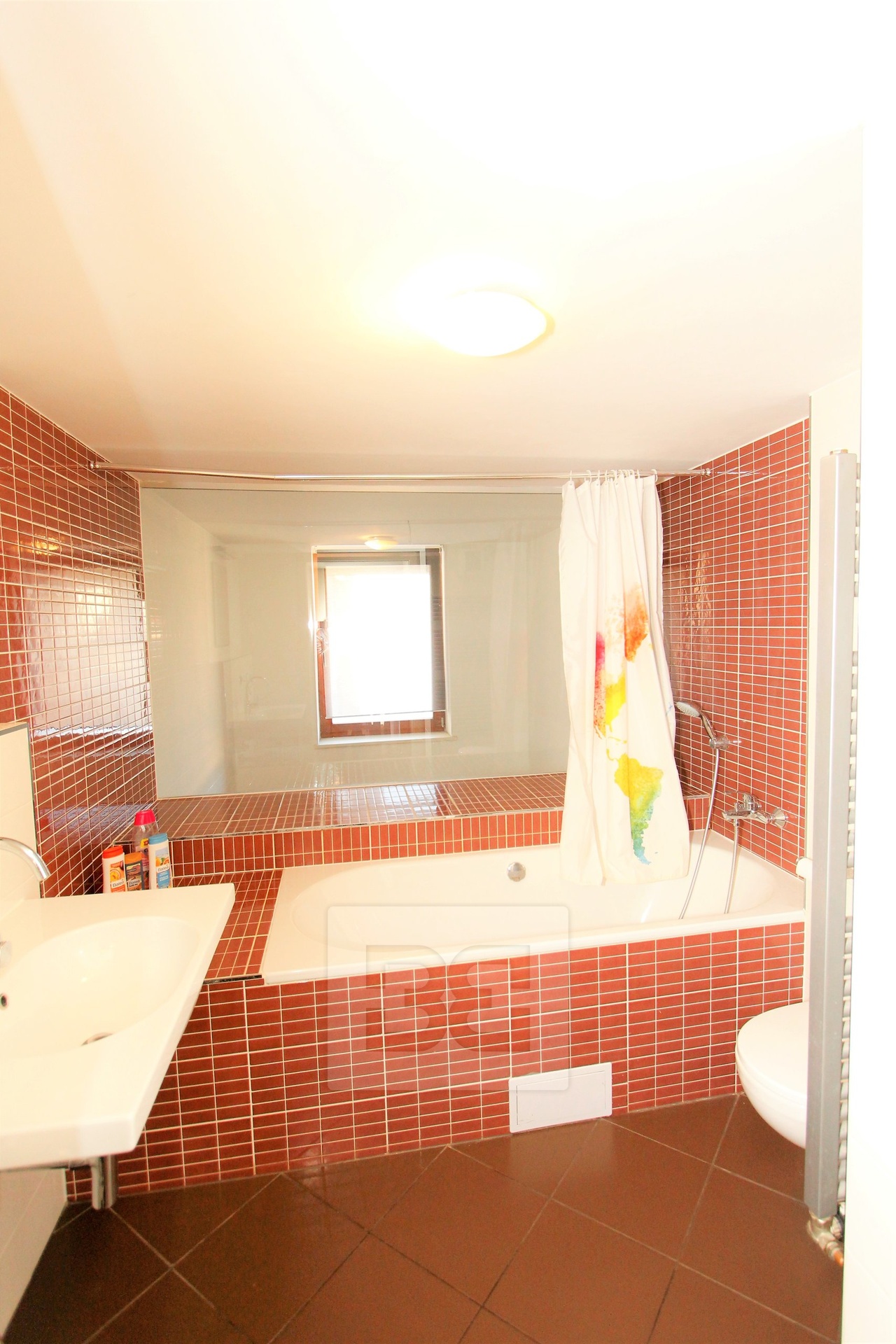 Koupelna je umístěna za ložnici a nejdeme zde vanu a toaletu.