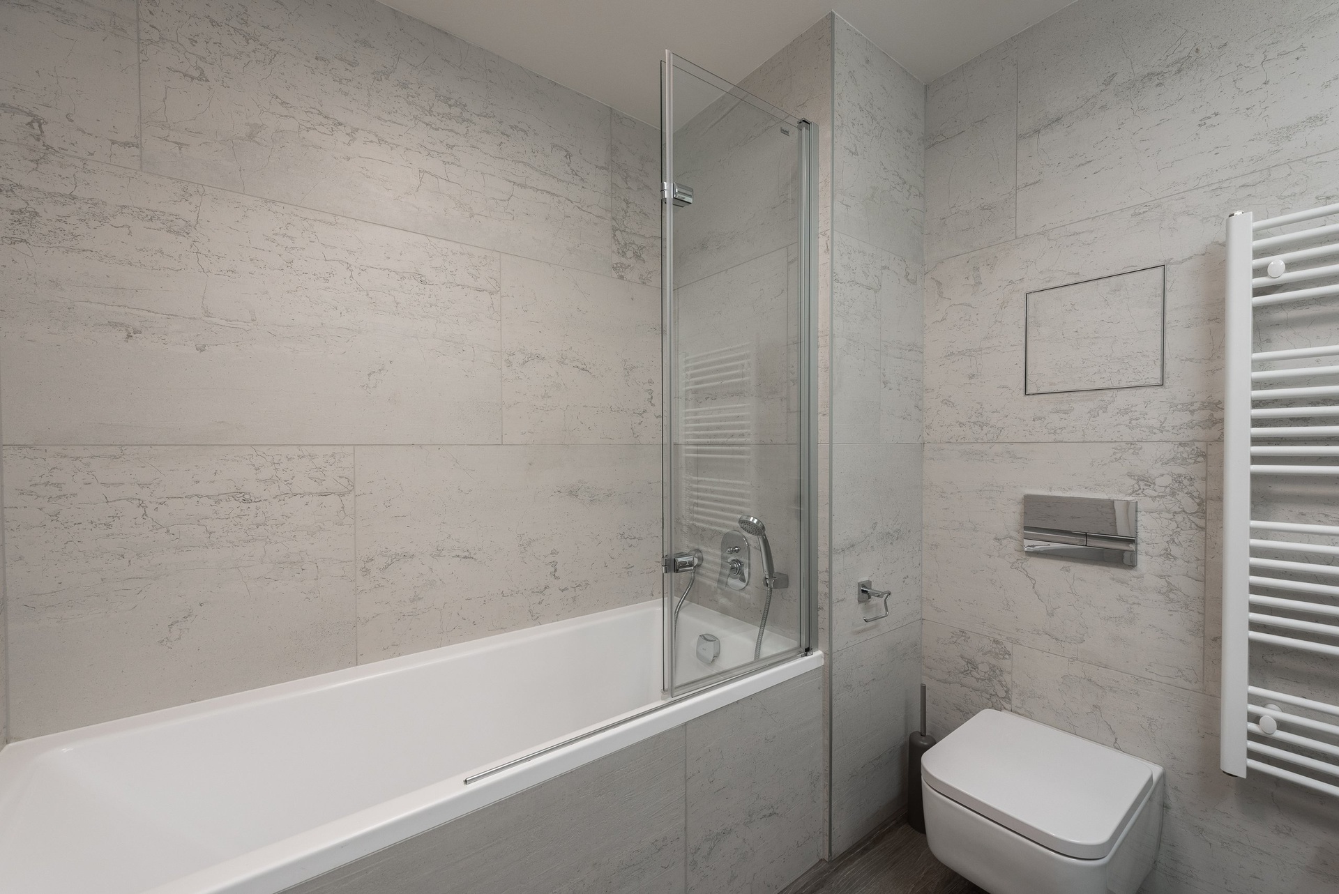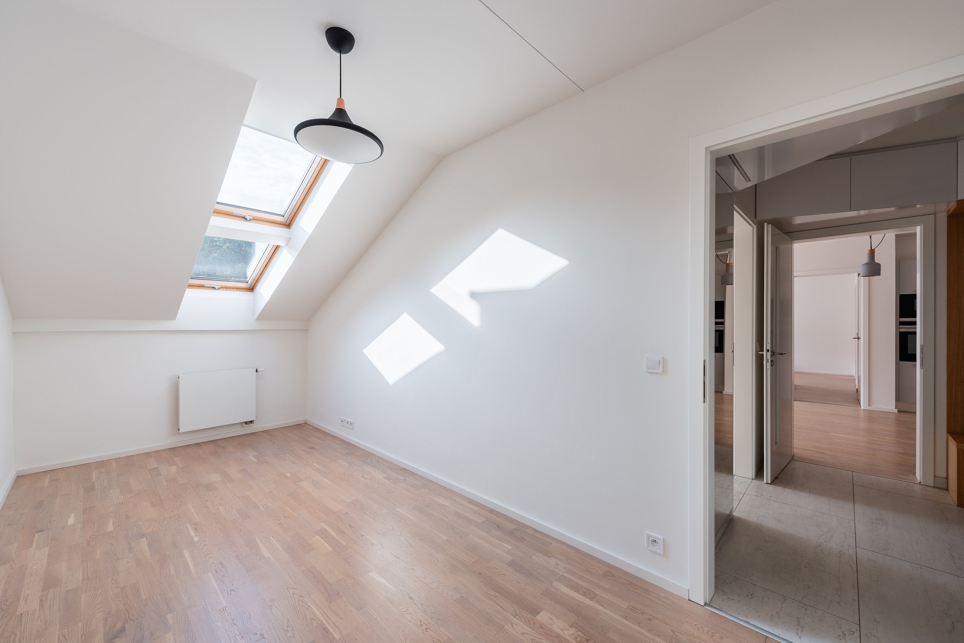 V bytě je klimatizace a předokenní elektrické rolety.