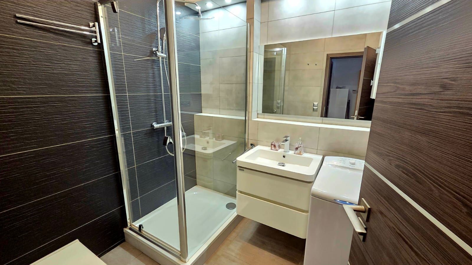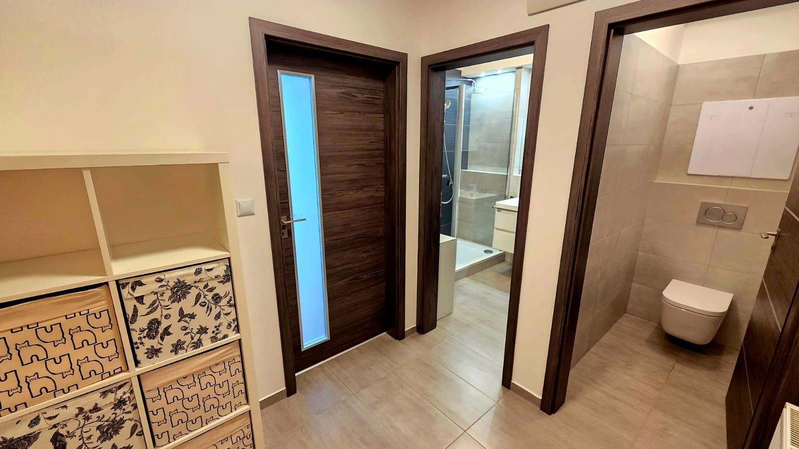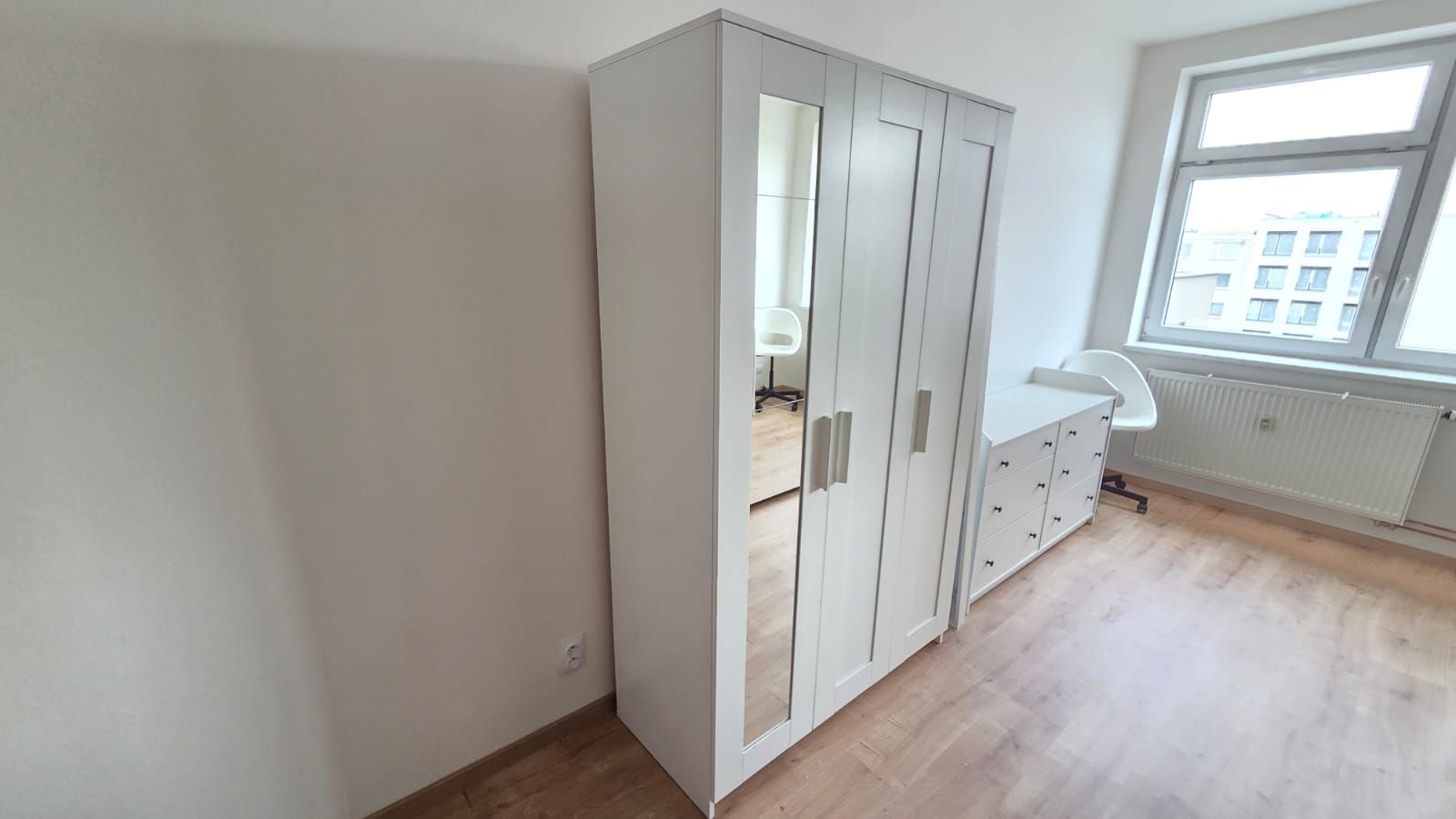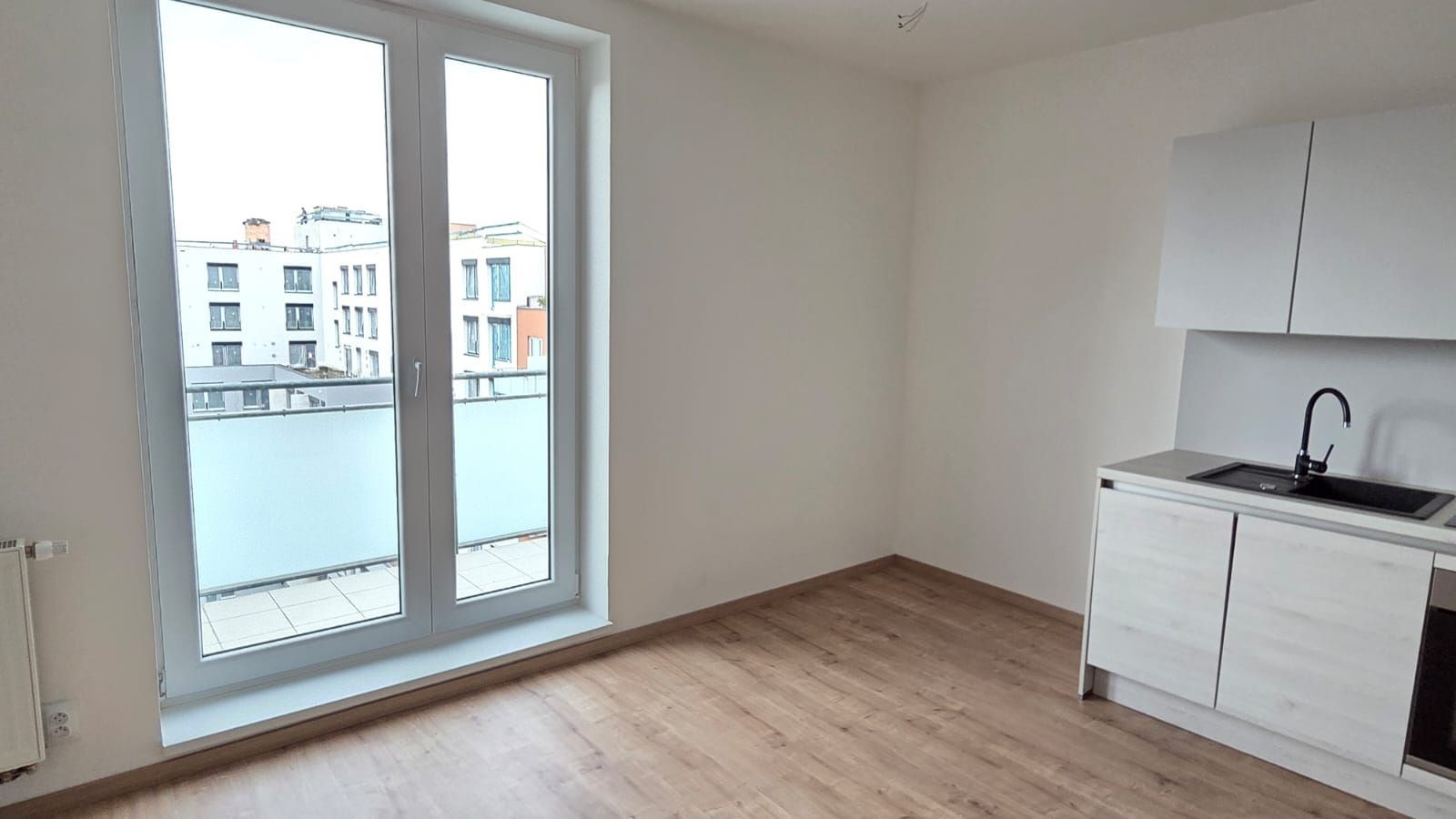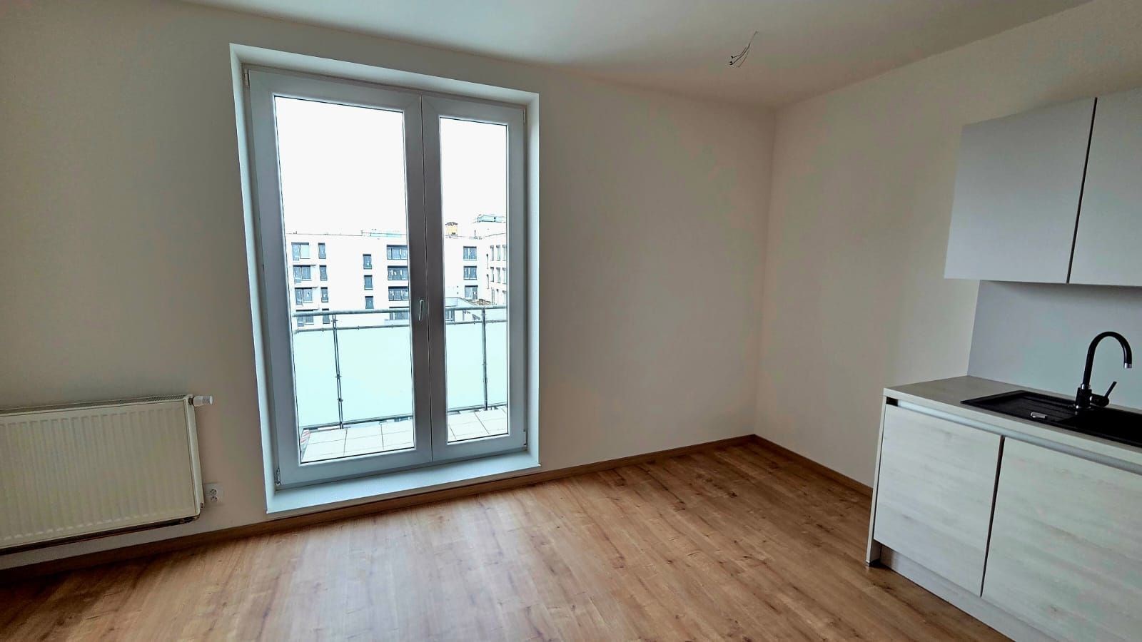 Nabízíme pronájem částečně zařízeného světlého bytu s orientací do rozlehlého tichého vnitrobloku, s dispozicí 2+kk (48m2) + terasa (5m2) + možnost garážového stání, v novostavbě, ul. Hodkovická, Praha 4, Kamýk, 9.patro (s výtahem) devitipatrové luxusní novostavby. Byt je po kompletní rekonstrukci. V bytě jsou plovoucí podlahy a dlažba. Kuch. linka je vč. skloker. var. desky, myčky, trouby a digestoře. Dále v bytě zůstává postel a šatní skříň vše viz foto. Prostorná koupelna je se sprchovým koutem, umyvadlem a pračkou. Toaleta je samostatná. Topení je ústřední. Orientace oken je na jihozápad. Garážové stání v suterénu domu je možno si k bytu pronajmout za dva tisíce měsíčně, není to podmínkou. Byt je k nastěhování od 1. 4. 2026.