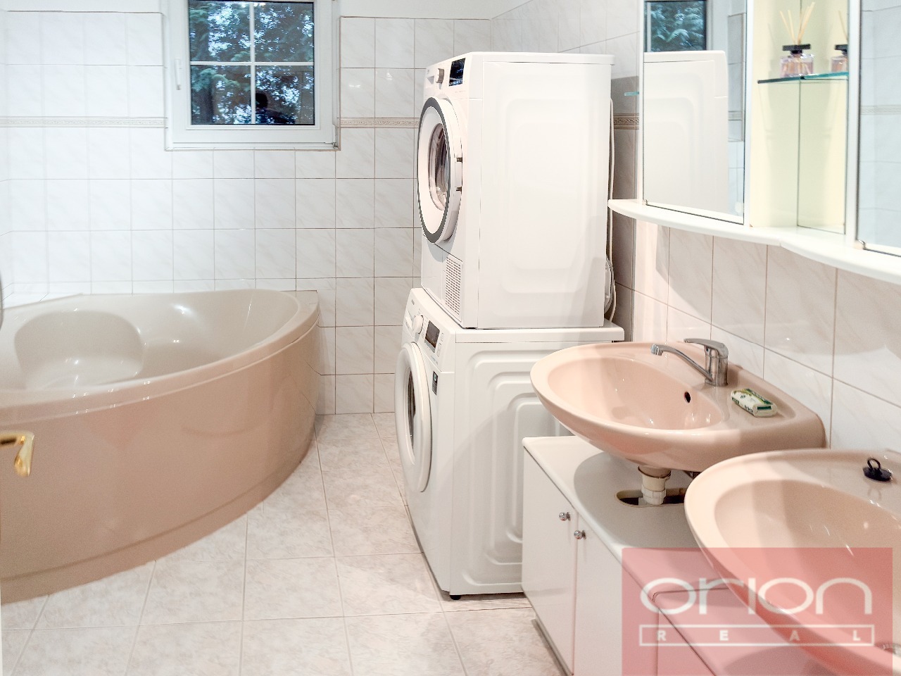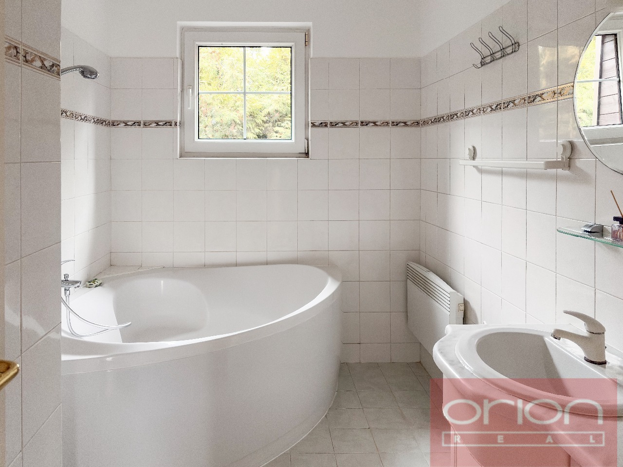 Nabízíme k pronájmu nezařízený rodinný dům 7+1 ve vyhledávané lokalitě Praha 6 - Nebušice. Celková obytná plocha 365 m2 nabízí v přízemí vstupní chodbu, prostorný obývací pokoj s krbem a přímým vstupem na zahradu, plně vybavenou kuchyň s jídelnou, koupelnu s vanou, WC, 1 ložnici a vnitřní bazén. V 1. patře je 5 ložnic, koupelna s vanou a sprchou, komora, WC a balkon. K vybavení domu patří pračka a sušička, vinylová podlaha a keramická dlažba, plastová okna s bezpečnostní mřížkou a bezpečnostními roletami, elektrické vytápění, prostorný sklep a udržovaná zahrada o velikosti 539 m2. V domě je vyhřívaný krytý bazén s plně automatickou odvlhčovací jednotkou, s přístupem z obývacího pokoje a venkovní terasy. Teplotu vody je možno temperovat až na 30 stupňů C. V celém objektu je nainstalováno elektronické zabezpečovací zařízení s možností připojení na pult centrální ochrany.