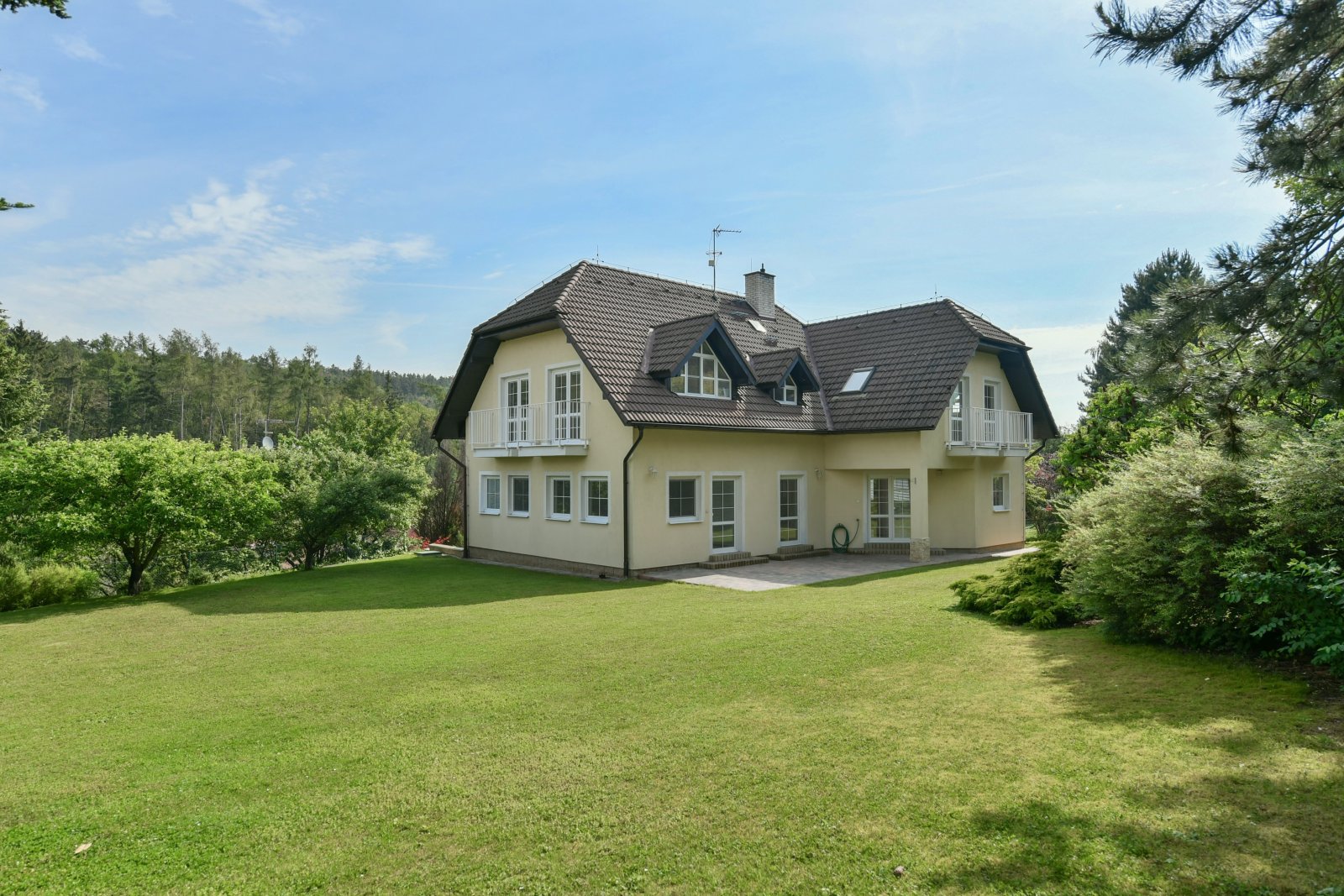 Nabízíme k pronáju prostorný, nezařízený rodinný dům 8+1 s udržovanou zahradou v oblíbené lokalitě Praha 6 - Nebušice, v těsné blízkosti mezinárodní školy ISP. Celková obytná plocha 251 m2 nabízí v přízemí vstupní halu, plně vybavenou kuchyni, jídelnu a prostorný obývací pokoj s krbem a přímým vstupem na terasu a zahradu o velikosti 858 m2, pracovnu a pokoj pro hosty, koupelnu s vanou a sprchou, samostatnou toaletu s bidetem. V horním patře se nachází 5 ložnic, z toho 3 se vstupem na balkon, komora, jedna koupelna s vanou, sušičkou a pračkou a samostatná toaleta s bidetem. Prostorná garáž pro 2 auta a další místa k parkování na pozemku. Soukromá příjezdová cesta zajišťuje maximální soukromí a naprostý klid. Atraktivní lokalita v těsné blízkosti přírodní rezervace Šárecké údolí. Nebušice jsou velmi vyhledávanou rezidenční čtvrtí zejména pro rodiny s dětmi. Výborná dopravní dostupnost do centra Prahy a na letiště, Pražský okruh a navazující dálniční síť. V pěší vzdálenosti je stanice autobusů, které jedou ke stanici metra Bořislavka.