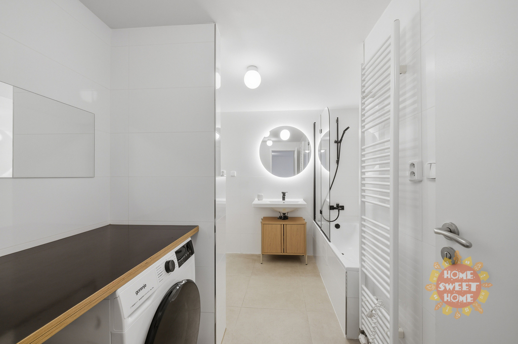 - Vybavení "Plug & Play": Stačí si vybalit kufr. Čeká na vás plně vybavená kuchyně, jídelní kout, pracovní místo pro váš home office a po práci relax u Smart TV s PS4.