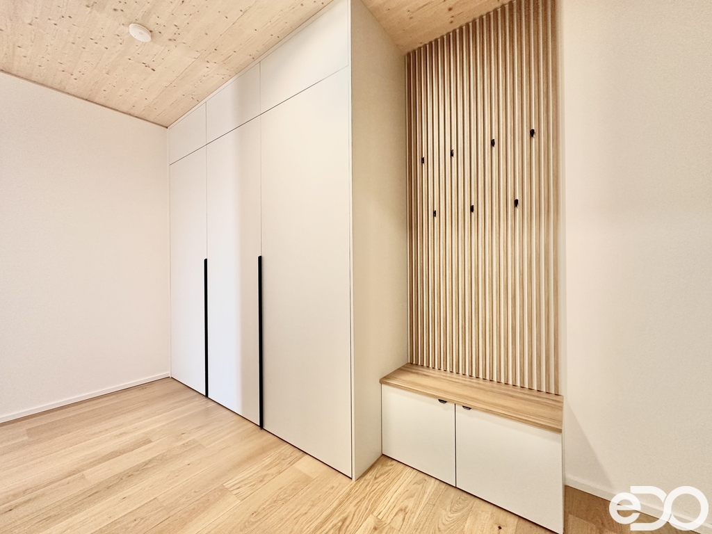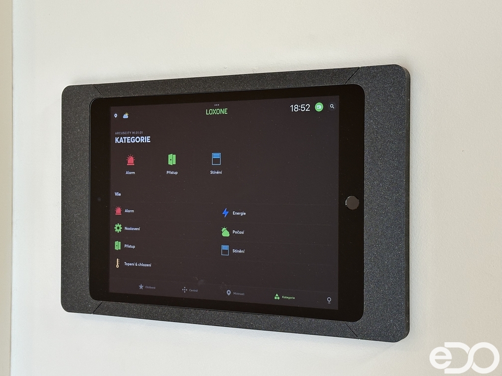 Byt dále disponuje moderním smart home systémem Loxone, který umožňuje mimo jiné inteligentní ovládání venkovních žaluzií, regulaci podlahového vytápění a chlazení v každé místnosti či monitorování spotřeby vody a energie.
