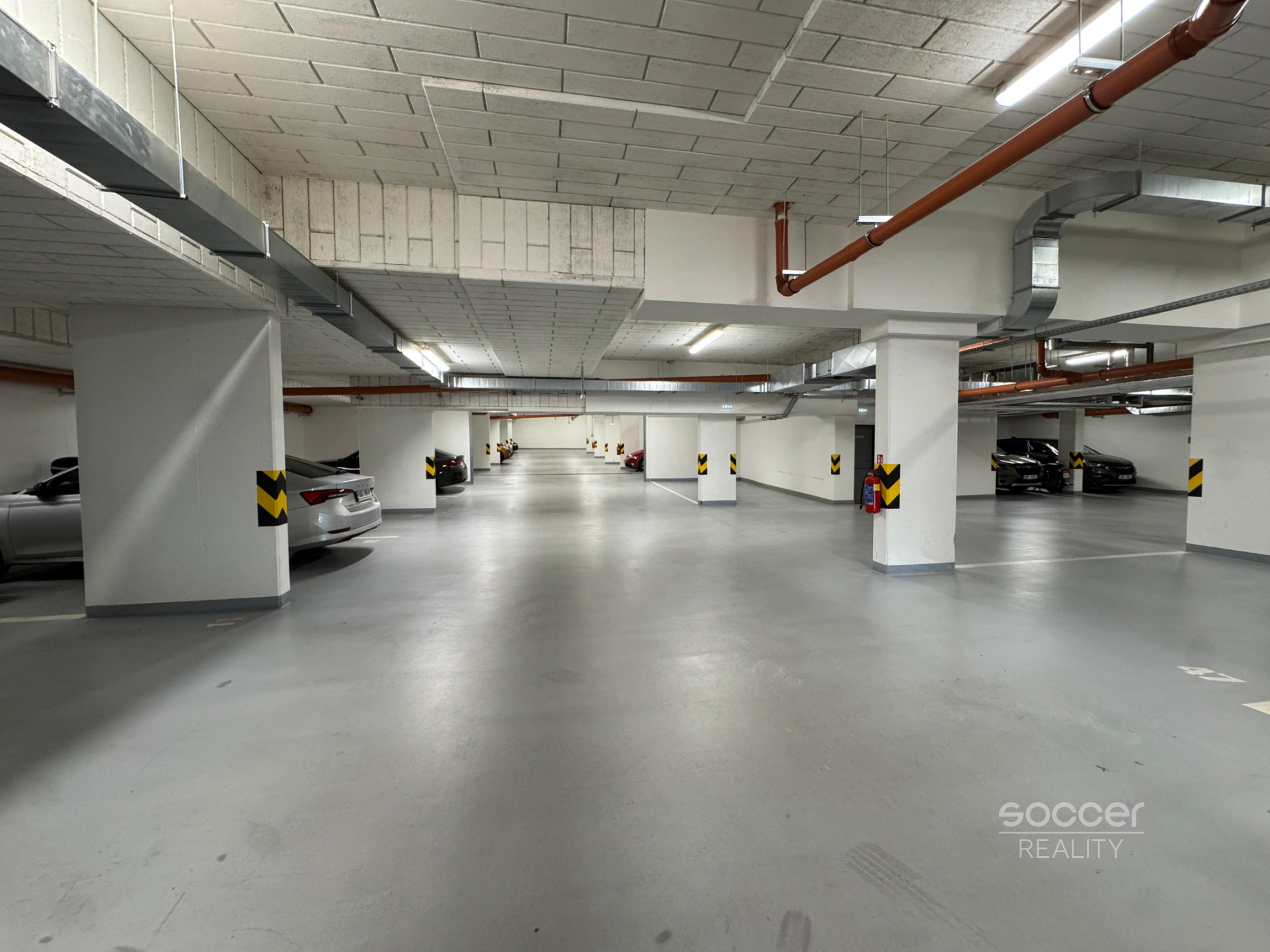 Stání se nachází v prostorných a čistých podzemních garážích s pohodlným vjezdem na dálkové ovládání. Výška vjezdu 2 m. Parkovací stání 3x5 m.